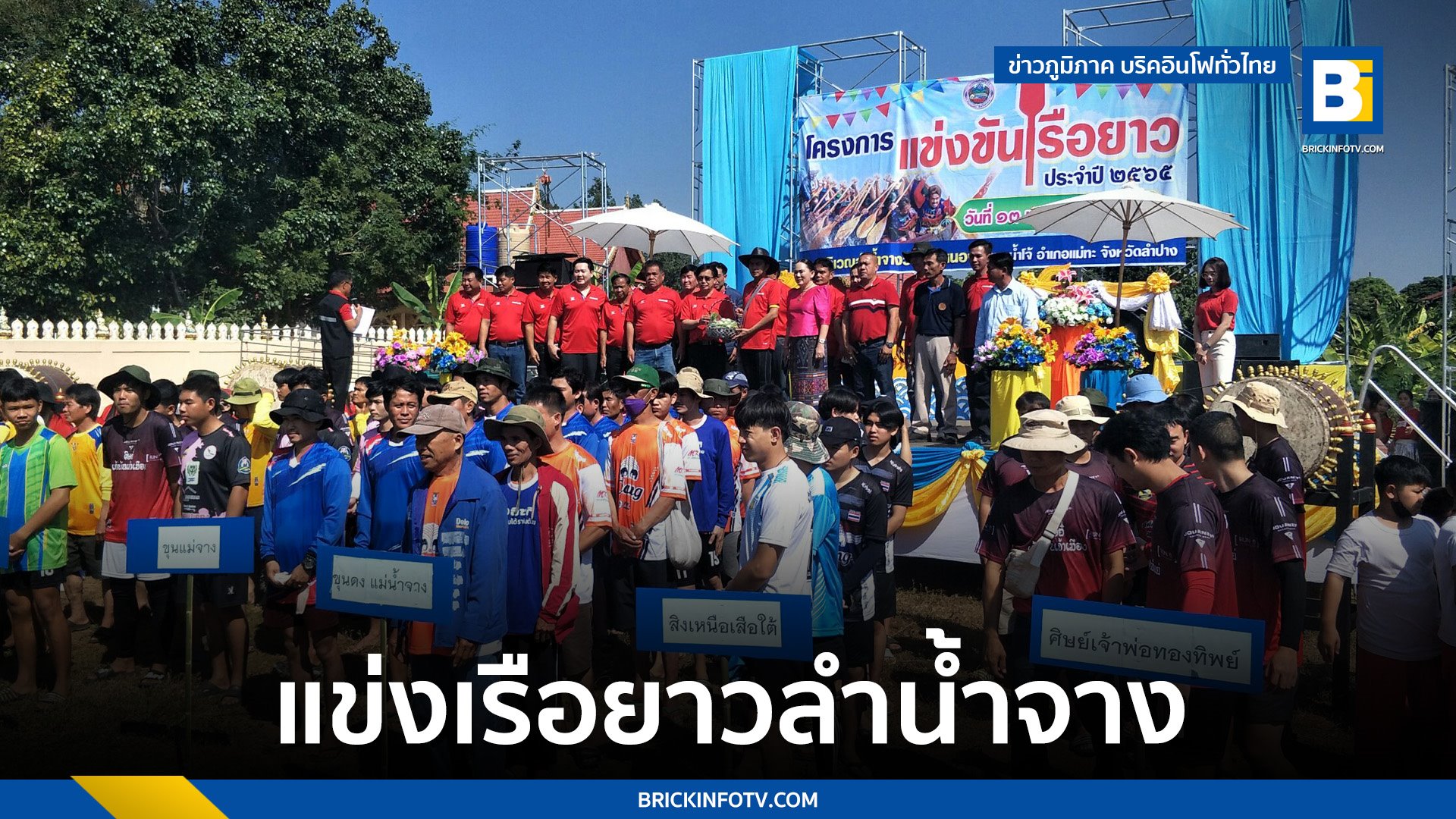 วันนี้ที่ 13 พฤศจิกายน 2565 ณ ที่บริเวณลานเอกนกประสงค์ท่าน้ำแม่จางหลังวัด หมู่บ้านหนองหมู่ 4 ตำบลน้ำโจ้ อำเภอแม่ทะ จังหวัดลำปาง เทศบาลตำบลน้ำโจ้ อำเภอแม่ทะ ได้จัดประเพณีแข่งเรือยาวประจำปี 2565 ขึ้น โดยมีนายจำลักษ์ กันเพ็ชร์ รองผู้ว่าราชการจังหวัดลำปาง เป็นประธานเปิดงาน ทั้งนี้ประเพณีแข่งขันเรือยาวเป็นประเพณีที่สำคัญของชาวบ้านหนอง ตำบลน้ำโจ้อำเภอแม่ทะ แห่งนี้ ซึ่งจัดขึ้นในเดือนพฤศจิกายนของทุกปี โดยที่ผ่านมาคนในหมู่บ้านหนองได้เริ่มจัดขึ้นเฉพาะคนในหมู่บ้านหนองเท่านั้น และมีผู้นำในหมู่บ้านร่วมด้วย ต่อมาชุมชนใกล้เคียงต่างให้ความสนใจ และมีผู้มาร่วมงานจากต่างจังหวัดด้วย ซึ่งทำให้มีผู้เข้าร่วมแข่งขันหลากหลาย แลกเปลี่ยนวัฒนธรรมระหว่างท้องถิ่น ประกอบกับนับตั้งแต่ทางเทศบาลตำบลน้ำโจ้ ได้ทำการขุดลอกลำน้ำจาง ปรับสถานที่ริมลำน้ำให้เป็นลานกว้าง ให้การสนับสนุนด้านต่าง ๆ เช่นการจัดสถานที่ การให้รางวัลผู้เข้าแข่งขัน รวมไปถึงกิจกรรมต่างๆมากมายจนปัจจุบันได้จัดทำโครงการแข่งขันเรือยาวเป็นประจำทุกปี ซึ่งเป็นการส่งเสริมสนับสนุน และรักษาวัฒนธรรมประเพณีของชุมชนได้เป็นอย่างดียิ่งและในด้านมาตรการความเตรียมพร้อมด้านต่างๆถือว่าได้ดำเนินการอย่างเป็นระบบและมีความปลอดภัยมีการเตรียมรถพยาบาล เจ้าหน้าที่พยาบาลโรงพยาบาลแม่ทะจังหวัดลำปาง เจ้าหน้าที่มูลนิธิกู้ภัยสว่างนครลำปาง สนับสนุนเรือกู้ภัย 2 ลำ รวมไปถึงเจ้าหน้าที่กู้ภัยกู้ชีพทางน้ำเข้ามาประจำการณ์ในพื้นที่และก็มีเหตุการณ์เรือแข่งขันล่มกลางน้ำขณะแข่งรอบคัดเลือกคู่แรกระหว่างทีมแม่คนงาม และทีมสิงห์เหนือ เสือใต้ กันเกือบจะถึงเส้นชัยเพียงแค่ 20 เมตร เรือของทีมสิงห์เหนือเสือใต้เกิดลงระหว่างแข่งขันทำให้ฝีพายทั้งหมดลอยคดโดยการเกาะเรือจากนั้นทีมกู้ภัยทางน้ำที่เตรียมพร้อมไว้แล้วได้เร่งเครื่องเรือยนต์เข้าช่วยเหลือทันทีโยใช้เวลาไม่ถึง 10 วินาทีก็นำชูชีพให้ฝีพายที่ลอยคอสวมใส่ได้ ก่อนที่จะพาทั้งหมดขึ้นฝั่งมาตรวจสอบความปลอดภัยพบว่าปลอดภัยทั้งหมดและได้กลับมาแข่งขันอีกครั้งซึ่งบรรยากาศทั่วไปคึกคักเป็นอย่างมากเพราะการชมการแข่งเรือนยาวในพื้นมี่จังหวัดลำปาง จะหาดูได้เพียงที่นี่ที่เดียว.