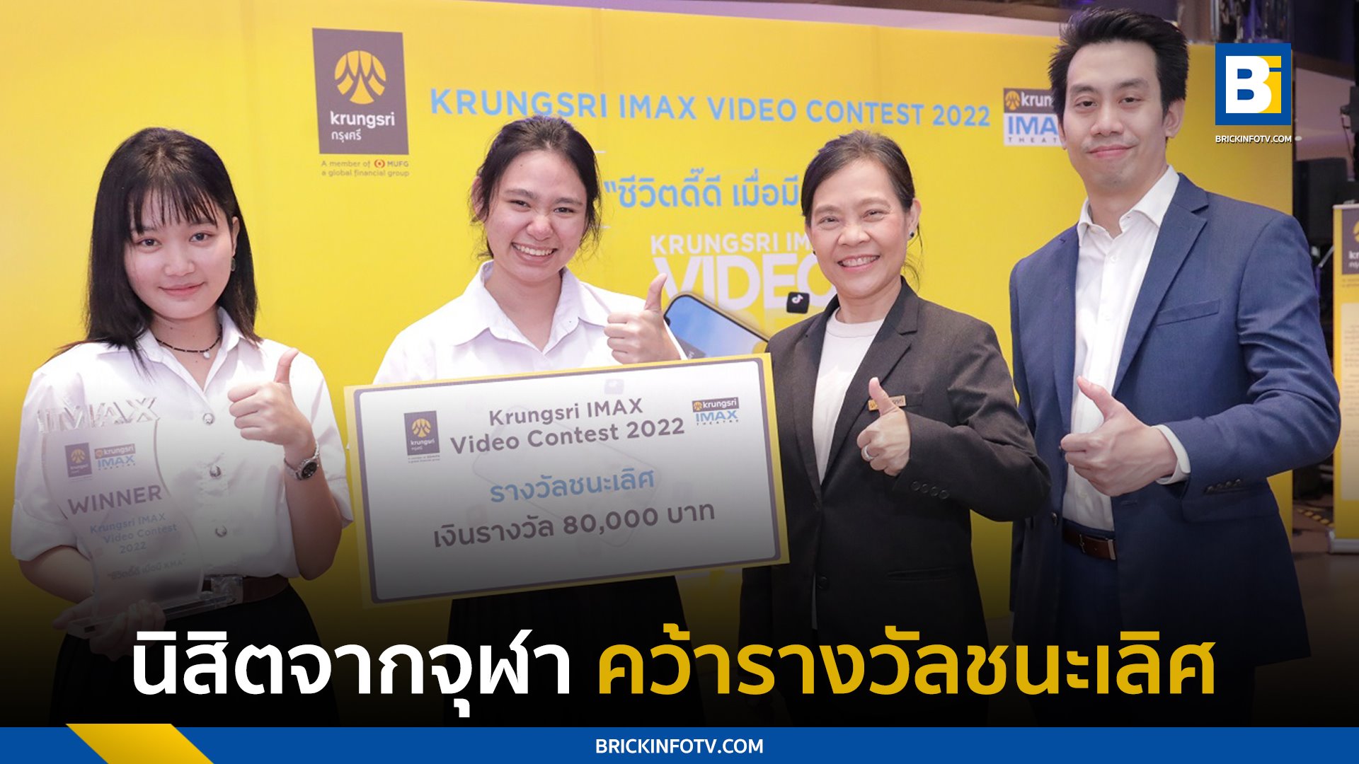 บริษัท เมเจอร์ ซีนีเพล็กซ์ กรุ้ป จำกัด (มหาชน) ร่วมกับ ธนาคารกรุงศรีอยุธยา จำกัด (มหาชน) ประกาศผลการตัดสินและมอบรางวัลการประกวดคลิปวิดีโอ “Krungsri IMAX Video Contest 2022” ครั้งที่ 8 ซึ่งเปิดโอกาสให้คนรุ่นใหม่ทั้ง นักเรียน นักศึกษา หรือ บุคคลทั่วไป เข้าร่วมประชันไอเดีย Content Creator ในหัวข้อ “ชีวิตดี๊ดี เมื่อมี KMA” ชิงเงินและของรางวัลรวมมูลค่า 200,000 บาท ในปีนี้มีผู้ให้ความสนใจส่งผลงานเข้าประกวดเป็นจำนวนมาก คณะกรรมการได้คัดเลือกผลงานที่โดดเด่นจาก 160 ผลงาน ทีมที่คว้ารางวัลชนะเลิศไปครอง คือ ทีม “ยี่สิบสามจุดห้าเป็ด เอ็กซ์ เลม่อนสเปซ” จากจุฬาลงกรณ์มหาวิทยาลัย