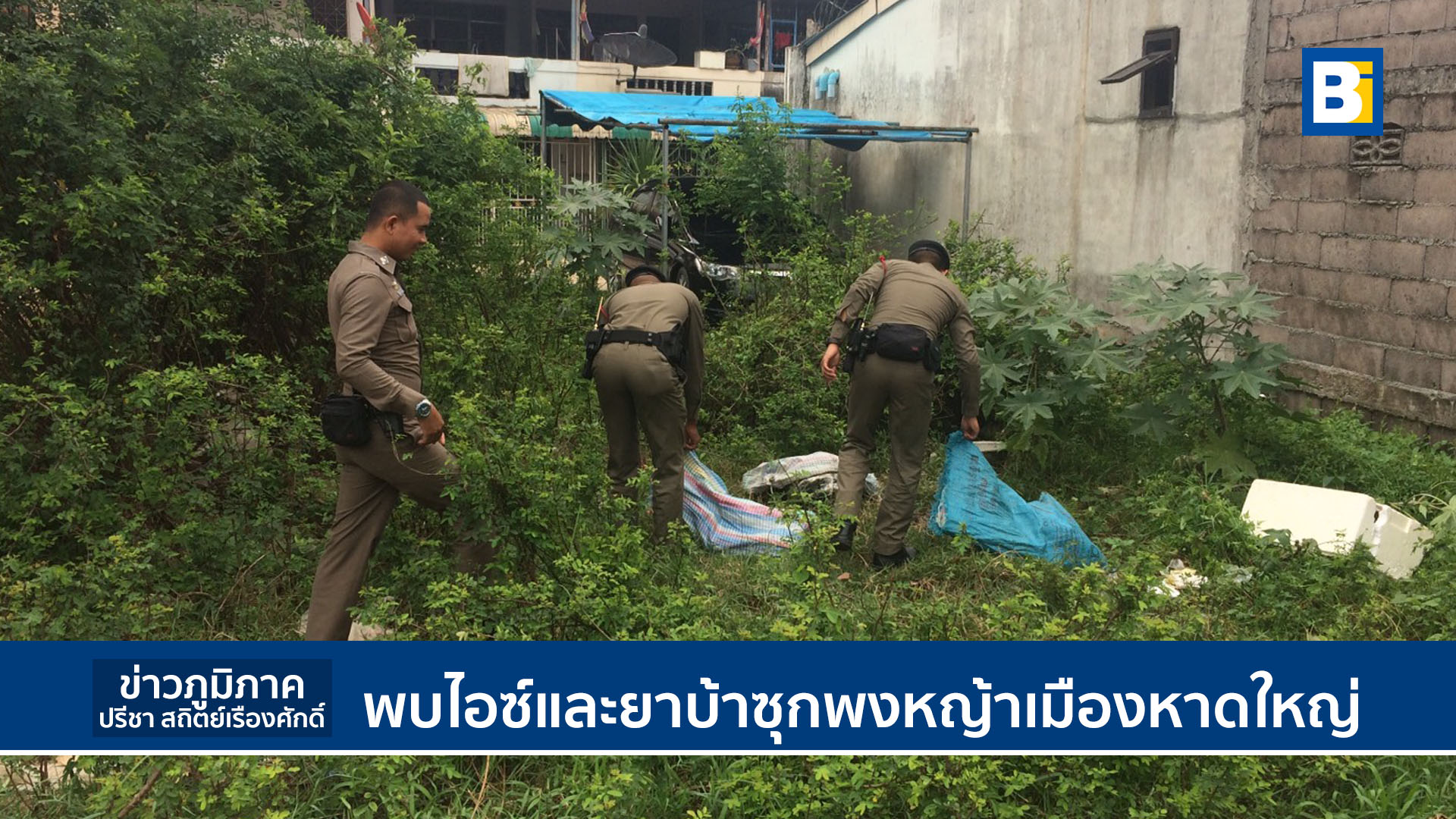 ชาวบ้านตะลึงพบยาไอซ์ 20 กิโลและยาบ้าเกือบ 1 แสนเม็ด ถูกนำมาวางไว้ในพงหญ้าบริเวณลานกว้างกลางชุมชนชานเมืองหาดใหญ่