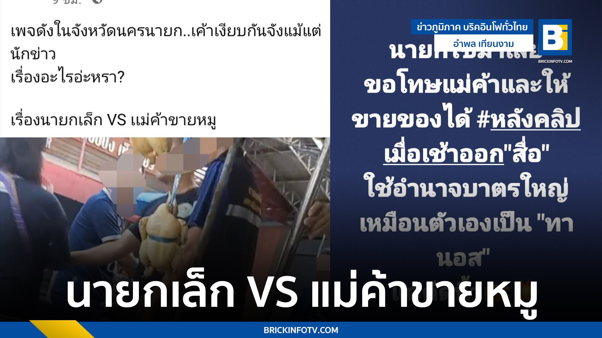 กระหน่ำโซเชี่ยล คลิปนายกเล็ก VS แม่ค้าขายหมู หวิดวางมวยด่าถ่อกลางตลาดสด เสียงวิพากษ์วิจารย์ใช้อำนาจสั่งลูกน้อง ยึดหมูไม่ให้ขาย ก่อนเคลียใจยอมขอโทษ อ้างเข้าใจผิด
