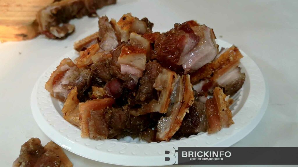 โดยกินแบบดั้งเดิม คือ กินแบบคนจีนจะมาทานหมูย่าง ที่ร้านติ่มซำในจังหวัดตรัง ที่ต้องทานคู่กับกาแฟ เสิร์ฟจากเตาแบบร้อน ๆ ซึ่งกว่าจะมาเป็นหมูย่างได้นั้นต้องผ่านขั้นตอนกรรมวิธีหลายอย่าง จะใช้หมูที่ขนาดน้ำหนักตัว 25-70 กิโลกรัม พร้อมทำการหมักหมูทั้งตัวด้วยเครื่องเทศสมุนไพรหลายชนิด เมื่อหมักหมูได้ที่ก็ห่อด้วยแผ่นฟลอยด์ จัดรูปทรงทาน้ำผึ้งบริเวณหนังหมู แล้วใช้ตะขอเกี่ยวตัวหมูยกลงเตาเผาขนาดใหญ่ เมื่อสุกได้ที่จะต้องใช้ตะขอเกี่ยวยกหมูที่สุกแล้วขึ้นจากเตา ซึ่งใช้เวลาในการทำหมูย่างรวม ๆ แล้วประมาณ 6-8 ชม.เลยทีเดียว จากนั้นก็นำหมูมาสับหั่นแยกชิ้นส่วนเตรียมขายหน้าร้านให้แก่ลูกค้าที่มารอซื้อ