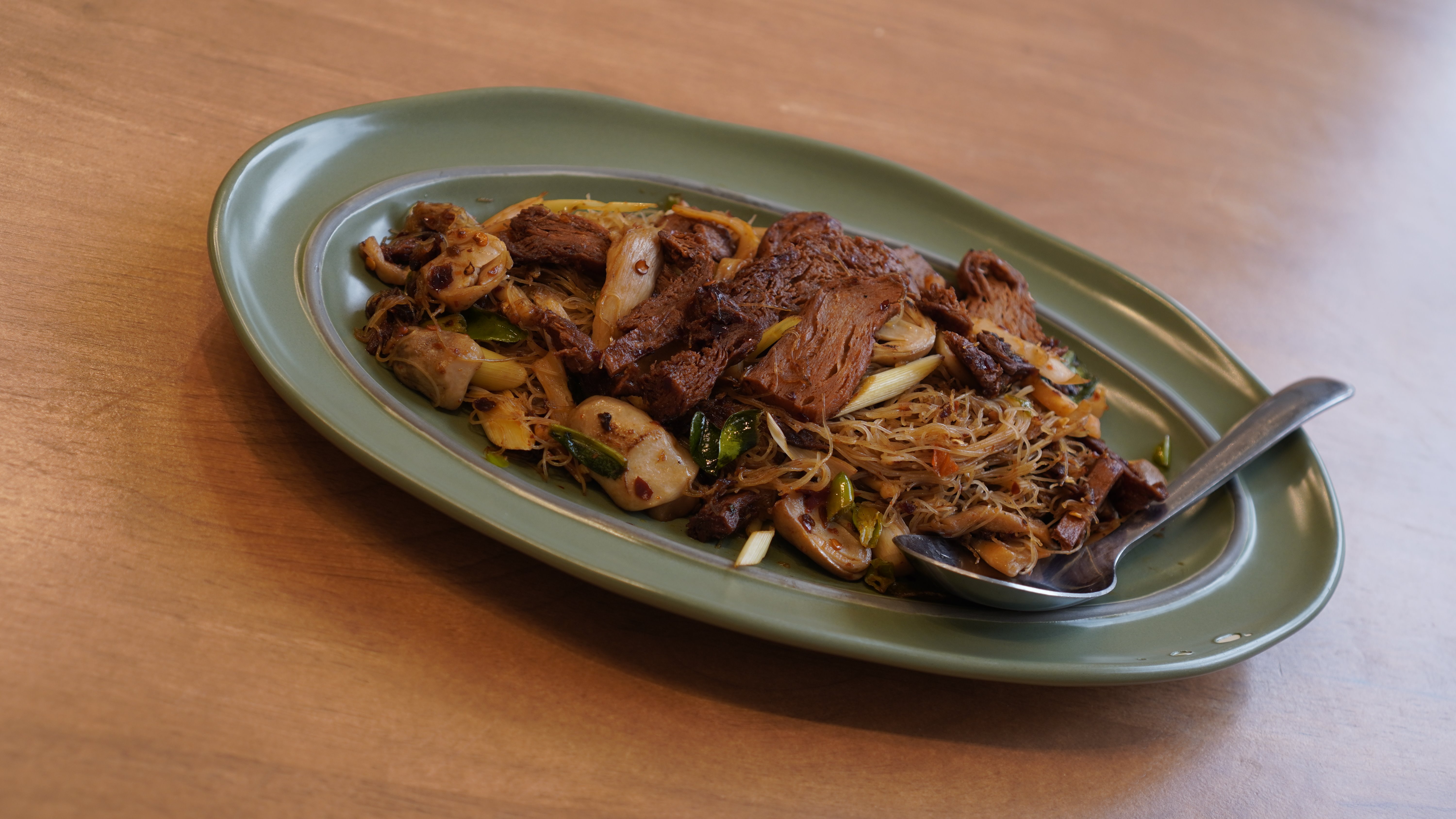 เริ่มต้นด้วยเมนู “เผือกทอด” สูตรเฉพาะของทางร้าน ให้สัมผัสกรอบนอกนุ่มใน ได้รสเผือกเต็มคำ ทานคู่กับน้ำจิ้มถั่วลิสง รสชาติจัดจ้าน อร่อยลงตัว เคี้ยวเพลินสุด ๆ นอกจากนี้ยังมีเมนูผัดไทโบราณเห็ดแดดเดียว, เต้าหู้กระเพรากรอบ , เส้นหมี่ต้มยำผัดแห้ง , เต้าหู้พริกไทยดำ , ข้าวผัดเห็ดเม็ดมะม่วง ฯลฯ นอกจากนี้ ยังมีข้าวให้เลือกถึง 4 แบบ ทั้งข้าวสวย ข้าว กล้อง ข้าวธัญพืช และข้าวผักกาดดอง