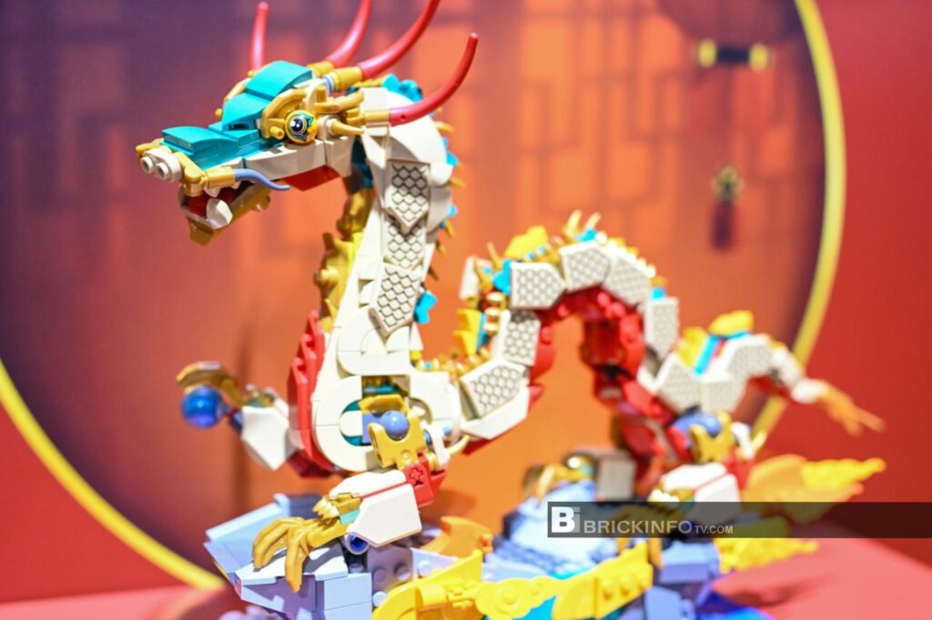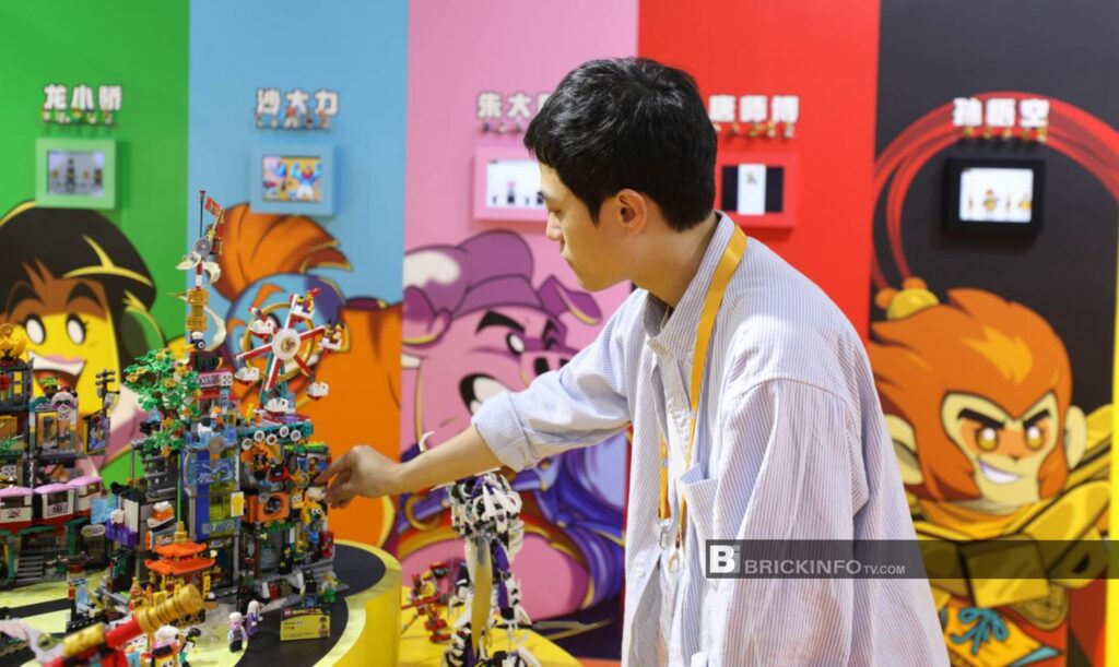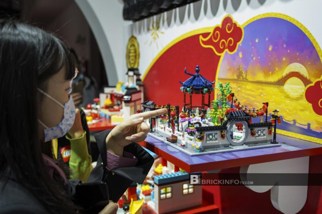 โดยบริษัทนำผลิตภัณฑ์เลโก้ที่ต่อเป็นรูปทรงต่างๆ มาจัดแสดงอย่างคับคั่ง เช่น มังกรจีนมงคล แพนด้ายักษ์มาสคอตของงาน ลานบ้านสไตล์จีนโบราณ สะพานจีนโบราณ และอื่นๆ อีกมากมาย