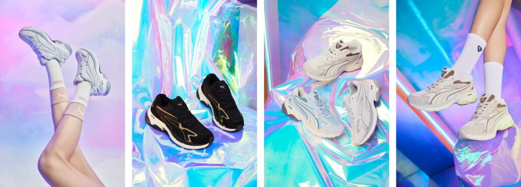 คอลเลคชั่นพิเศษ PUMA x IVE ชวนย้อนเวลากลับสู่แฟชั่นยุค Y2K กับไอดอลเกิร์ลกรุ๊ปเกาหลีเจนใหม่ IVE ไฮไลท์ด้วยคอลเลคชั่นรองเท้าTeveris NITRO รุ่นใหม่ที่ได้แรงบันดาลใจจากรองเท้าวิ่งของ PUMA ยุค 2000 มาพร้อมกับเทคโนโลยีความเบาสบายขั้นสุดอย่าง NITRO™ cushioning มอบความสะดวกสบายในทุกย่างก้าว พร้อมดีไซน์แบบสปอร์ตแฟชั่น ที่เรียกได้ว่า สามารถผสมผสานความสวยงามและนวัตกรรมได้เป็นอย่างดี นอกจากนี้ ยังมีเสื้อผ้าที่ได้แรงบันดาลใจจากการผสมผสานความเรียบหรูเข้ากับกลิ่นอายแฟชั่น Y2K พร้อมเพิ่มความมินิมอล และลูกเล่นดีเทลสุดเก๋ด้วยช่องกระเป๋าขนาดใหญ่และป้ายแบรนด์อันจิ๋ว ควบคู่ไปกับการใช้สีเขียวโทน ever-green ที่ไม่ว่าจะจับแมทซ์เป็นลุคสบายหรือจัดเต็ม ก็เข้ากันได้อย่างลงตัว