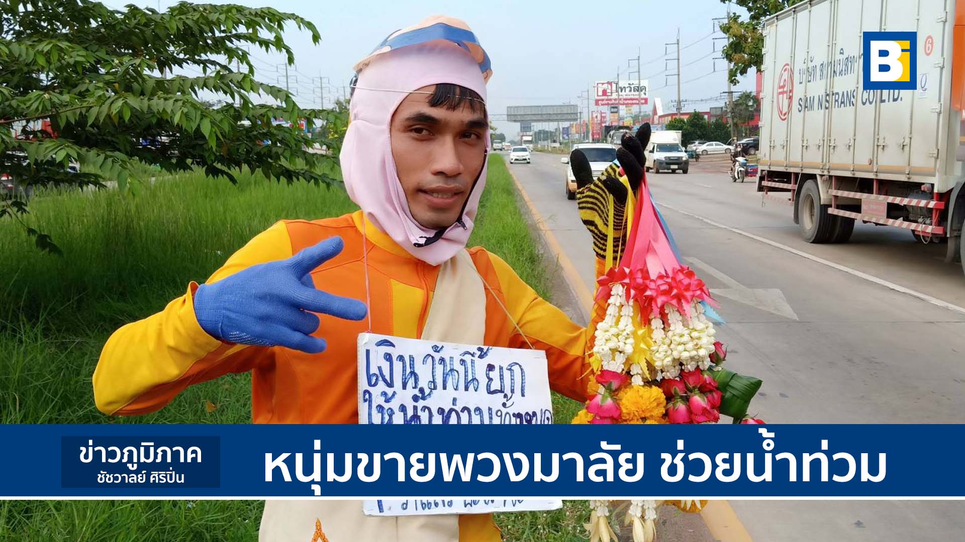 ปราจีนบุรี-หนุ่มขายพวงมาลัยใจปั้มมอบเงินช่วยน้ำท่วมร่วมกับ บิณบรรลือฤทธิ์!!