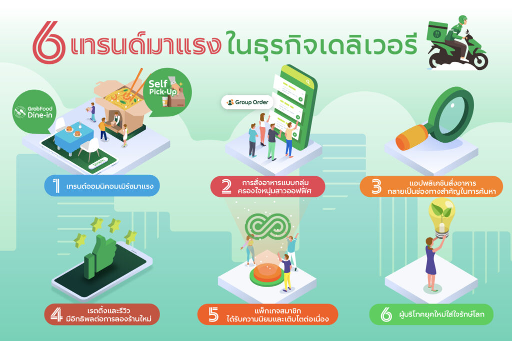 ทั้งนี้ แกร็บได้จัดทำรายงาน เทรนด์การสั่งอาหารและของใช้ในบ้าน ปี 2566” เพื่อศึกษาพฤติกรรมการใช้บริการเดลิเวอรี ทั้งการสั่งอาหารและการซื้อสินค้าในชีวิตประจำวัน พร้อมสำรวจความคิดเห็นของผู้ใช้บริการแกร็บใน 6 ประเทศ ซึ่งรวมถึงประเทศไทย โดยพบเทรนด์ที่สำคัญในประเทศไทย คือ