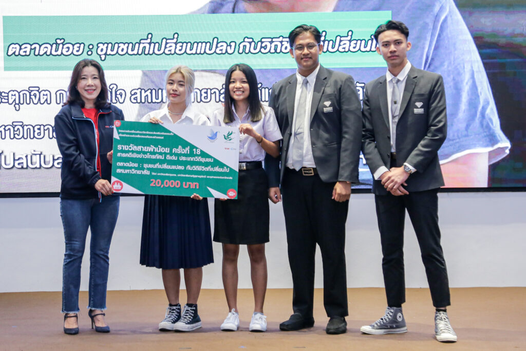 สมาคมนักข่าววิทยุและโทรทัศน์ไทย โดย นายอิทธิพันธ์ บัวทอง นายกสมาคม และ ทรู คอร์ปอเรชั่น โดย นางพิมลพรรณ ศิริวงศ์วานงาม หัวหน้าฝ่ายสื่อสารประชาสัมพันธ์ภายนอก บมจ. ทรู คอร์ปอเรชั่น มอบรางวัล “สายฟ้าน้อย” ครั้งที่ 18 ประจำปี 2566 แก่นิสิต นักศึกษา ผู้ชนะการตัดสินจากผลงานที่ส่งเข้าประกวดทั้งหมด 78 เรื่อง แบ่งเป็นประเภทสารคดีเชิงข่าวโทรทัศน์ 60 เรื่อง จาก 14 สถาบัน และสารคดีเชิงข่าววิทยุ 18 เรื่องจาก 6 สถาบัน