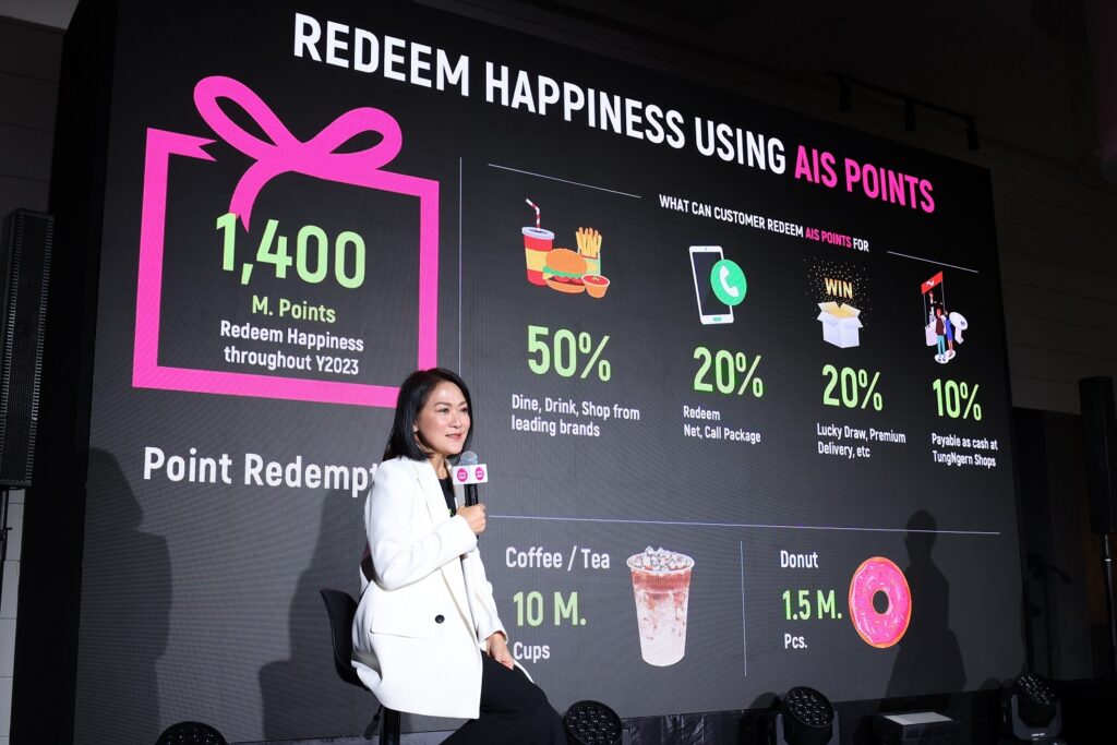 “รูปแบบของการดูแลลูกค้าด้วย AIS Points ประกอบไปด้วย 3 ส่วน คือ รับ (EARN), แลก (BURN) และ ลุ้น (EXCITEMENT) จากคะแนนที่ลูกค้าสะสม ซึ่งตลอดระยะเวลาที่เปิดตัวโปรแกรมนี้ เราสามารถส่งมอบประสบการณ์ความพิเศษที่ตรงใจกับพฤติกรรมการใช้งานของลูกค้าในทุกรูปแบบ โดย AIS ยังคงเดินหน้าพัฒนารูปแบบการใช้พอยท์ของลูกค้าเพื่อให้ตอบโจทย์ และอำนวยความสะดวกมาอย่างต่อเนื่อง ล่าสุด ยกระดับสู่การเป็น AIS Points Platform ที่รวมพลังของพาร์ทเนอร์มาร่วมกันสร้างความพึงพอใจให้แก่ลูกค้าจากการเชื่อมต่อกับการทำงานบน พอยท์ แพลตฟอร์ม เพื่อยกระดับความสะดวกไปอีกขั้น”