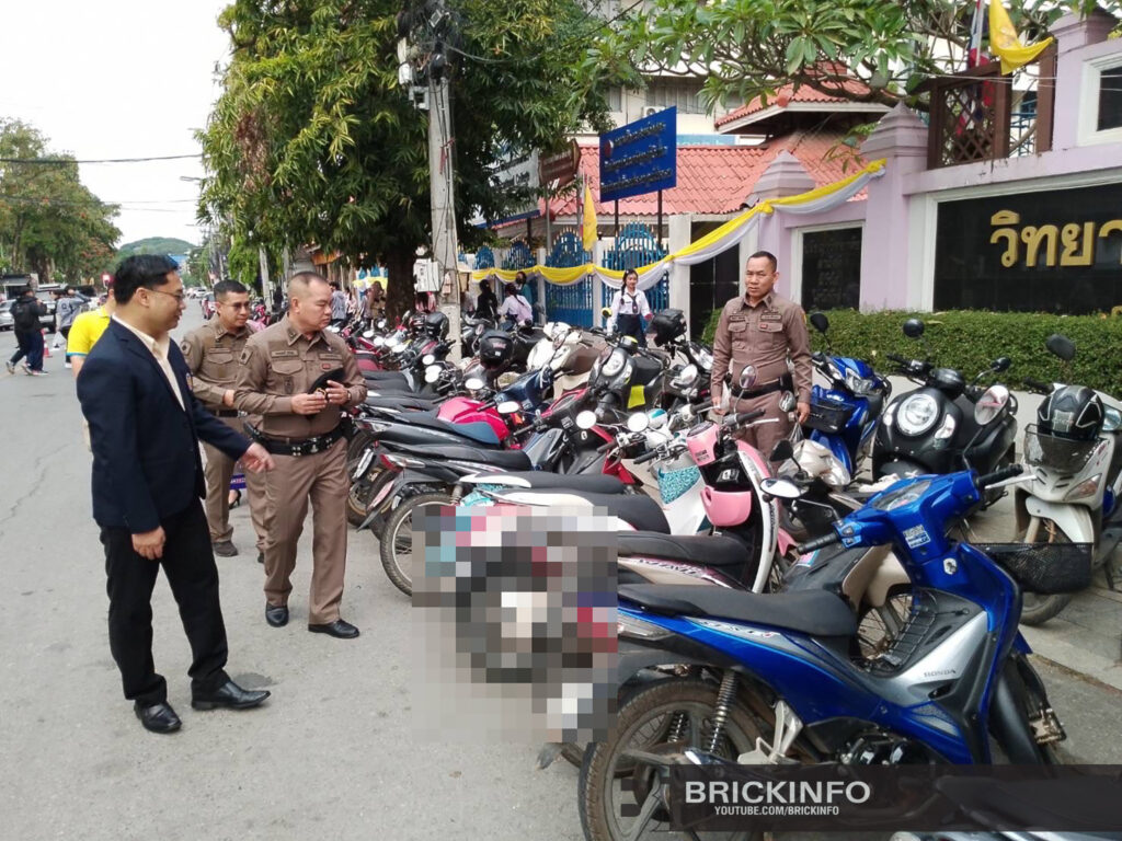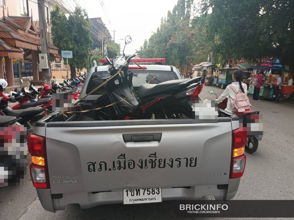 จากนั้นได้ทำการตรวจสอบรถจักรยานยนต์ที่มีลักษณะเข้าข่ายท่อเสียงดัง บริเวณสถานที่จอดรถของนักเรียนนักศึกษาวิทยาลัยอาชีวศึกษาเชียงราย ผลการตรวจสอบ สามารถตรวจยึด รถ จยย. ที่ดัดแปลงสภาพรถและท่อเสียงดังเกินกว่าที่กฎหมายหมายกำหนด จำนวน 2 คัน.