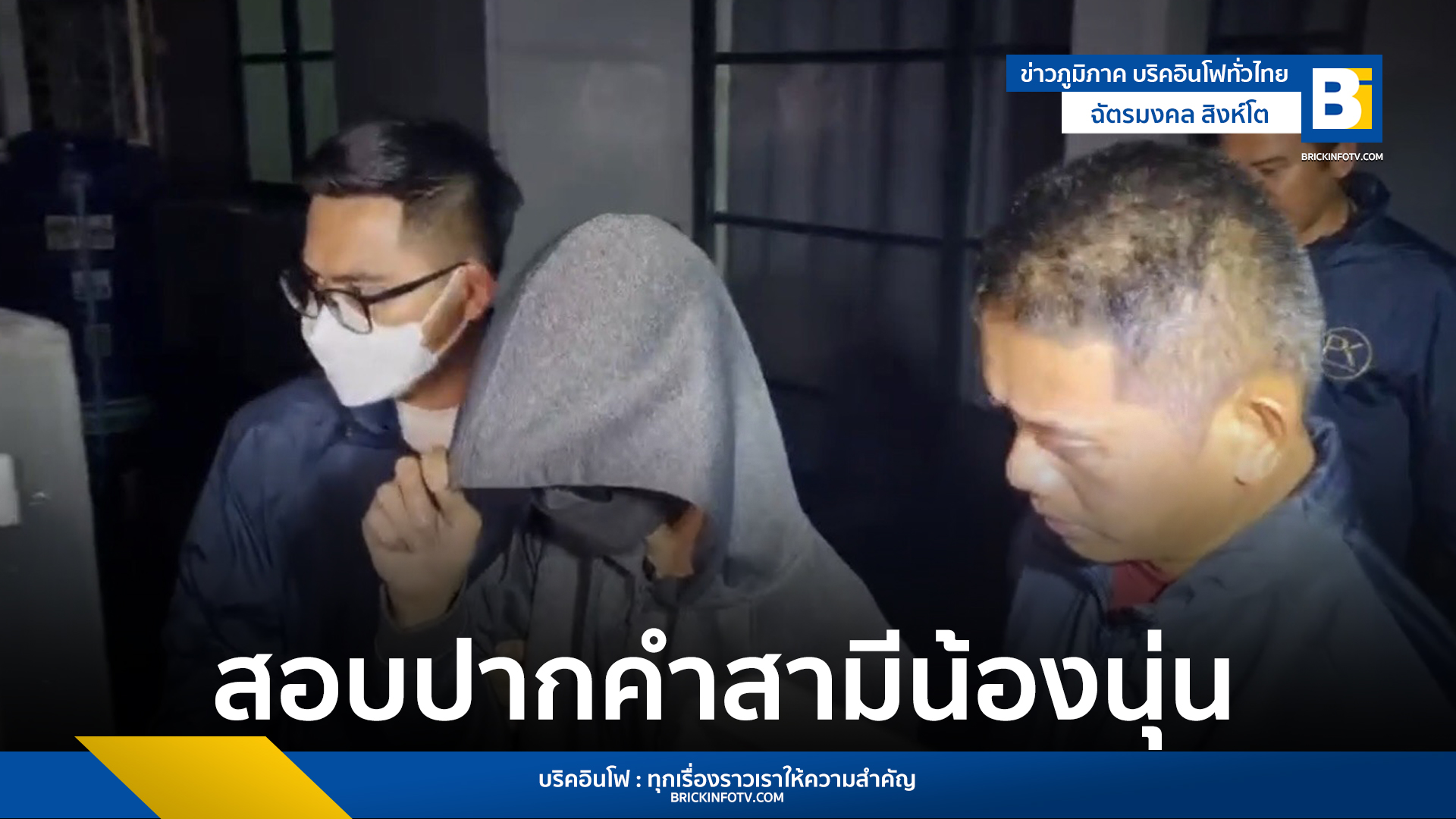 เมื่อเวลา 19.00 น. วันที่ 20 ก.พ.67 พ.ต.อ.คมกฤษณ์ คำบุศย์ผกก.สส.ภ.จว.นนทบุรี พ.ต.ท.ติรัส ตฤณเตชะ รองผกก.สส.สภ.ปากเกร็ด พ.ต.ท.แสงระวี ภูสอาด สว.สส.สภ.ปากเกร็ด พร้อมเจ้าหน้าที่ชุดสืบสวนสภ.ปากเกร็ด นำกำลังเข้าตรวจสอบบ้านเลขที่ 53/271 ภายในหมู่บ้านดังย่านเมืองทองธานี อ.ปากเกร็ด จ.นนทบุรี ซึ่งเป็นบ้านของนายศิริชัย รักทอง อายุ 33 ปี สามีน้องนุ่นผู้สูญหาย พบรถยนต์เก๋งหรู BMW สีขาวหมายเลขทะเบียน 1 ขส-6644 กรุงเทพมหานคร จอดอยู่ภายในบ้าน ก่อนทางตำรวจจะควบคุมตัวนายนายศิริชัย มาที่ห้องสืบสวนสภ.ปากเกร็ด เพื่อสอบปากคำเพิ่มเติมต่อไป โดยมีพ.ต.อ.สมพล วงศ์ศรีสุนทร รอง ผบก.ภ.จว.นนทบุรี เดินมางเข้าสอบปากคำอย่างเร่งด่วน