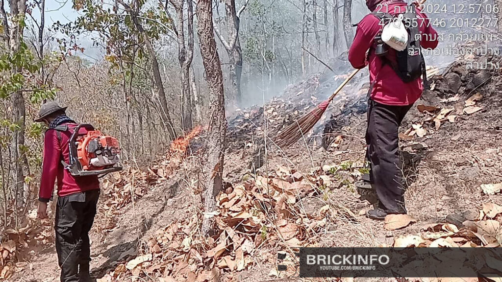 เมื่อวันที่21ก.พ.67 บริเวณพื้นที่ดอยพระบาท เป็นสันเขาแนวยาวกั้นระหว่างอำเภอเมือง อำเภอแม่เมาะ และอำเภอแม่ทะ ของจังหวัดลำปาง ภาพมุมสูงพบว่ามีไฟไหม้ป่า เป็นแนวยาว และหลายจุด บนดอยพระบาทฝั่งอำเภอเมืองลำปาง ทำให้มีกลุ่มควันไฟลอยขึ้นท้องฟ้า เป็นจำนวนมาก คาดกินพื้นที่ป่าเป็นบริเวณกว้าง ไม่ต่ำกว่า500ไร่ ซึ่งเป็นป่าไม้เต็งรัง เป็นฤดูผลัดใบ ประกอบกับอากาศแห้งแล้ง ทำให้ติดไฟได้ง่ายจนลุกลามไหม้อย่างรวดเร็ว ถึงแม้กำลังเจ้าหน้าที่ดับไฟป่าในพื้นที่ ฝ่ายปกครอง จัดกำลังเข้าช่วยกันดับไฟป่า แต่ด้วยปัญหาอุปสรรคดอยพระบาทเป็นภูเขาสูงชัน ทำให้การดับไฟป่าเป็นไปด้วยยากลำบาก