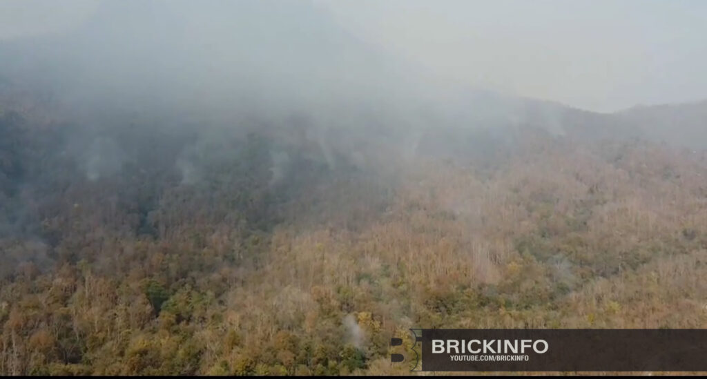 ลำปาง – อย่างกับ “ภูเขาไฟ” ไฟป่าไหม้ ทั้งควัน หมอกฝุ่น คลุม “ดอยปู่ยักษ์” เจดีย์ลอยฟ้าชื่อดัง ประกาศหยุดชั่วคราว 2 วัน
