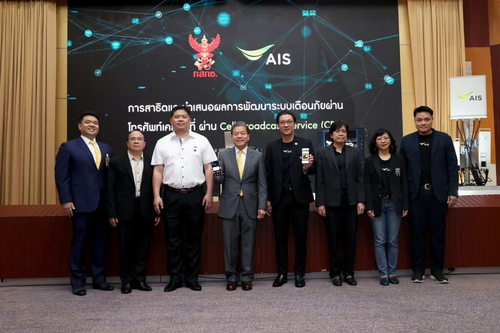 ด้าน นายวรุณเทพ วัชราภรณ์ หัวหน้าฝ่ายงานธุรกิจสัมพันธ์ เอไอเอส ให้ข้อมูลเพิ่มเติมว่า “เราได้ร่วมทำงานกับ กสทช. และภาครัฐ ในการเลือกเทคโนโลยีที่เหมาะสมกับระบบเตือนภัยของประเทศตามมาตรฐานสากล นั่นคือ เทคโนโลยี Cell Broadcast Service หรือ ระบบสื่อสารข้อความตรงไปที่โทรศัพท์เคลื่อนที่ของประชาชน ซึ่งระบบนี้มีความเหมาะสมกับการนำมาใช้เพื่อแจ้งเตือนเหตุฉุกเฉิน เนื่องจากสามารถส่งข้อความไปยังโทรศัพท์มือถือทุกเครื่องที่อยู่ในพื้นที่ครอบคลุมของสถานีฐานบริเวณนั้น ๆ ในเวลาเดียวกัน ด้วยรูปแบบของการแสดงข้อความที่หน้าจอโทรศัพท์เคลื่อนที่ (Pop UP Notification) แบบ Near Real Time Triggering เพื่อให้สามารถรับรู้สถานการณ์ได้ทันที โดยล่าสุดได้ทดลอง ทดสอบเทคโนโลยีดังกล่าว ได้ผลตามเป้าหมายที่ต้องการเรียบร้อยแล้ว และพร้อมที่จะขยายผลเชื่อมโยงกับระบบเตือนภัยของประเทศได้อย่างเต็มประสิทธิภาพต่อไป”
