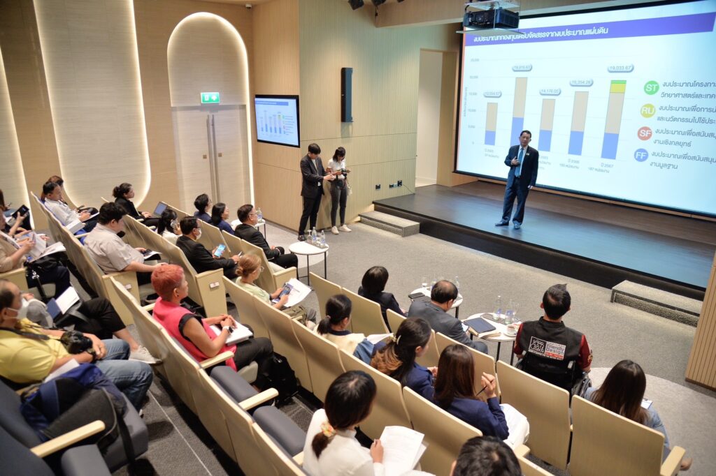 สำนักงานคณะกรรมการส่งเสริมวิทยาศาสตร์ วิจัยและนวัตกรรม หรือ สกสว. นำโดย ศาสตราจารย์ นายแพทย์ ดร.สิริฤกษ์ ทรงศิวิไล ประธานกรรมการส่งเสริมวิทยาศาสตร์ วิจัยและนวัตกรรม (กสว.) นำเสนอนโยบายและแนวทางการขับเคลื่อนประเทศด้วยระบบวิทยาศาสตร์ วิจัยและนวัตกรรม (ววน.) ที่ตอบโจทย์นโยบายของรัฐบาล สอดรับกับทิศทางการพัฒนาประเทศอย่างยั่งยืน ผ่านงาน “กสว. พบปะสื่อมวลชน : ก้าวต่อไปสู่การขับเคลื่อนระบบ ววน.ของประเทศ” พร้อมแนะนำคณะกรรมการส่งเสริมวิทยาศาสตร์ วิจัยและนวัตกรรม (กสว.) ชุดใหม่ กับสื่อมวลชน เพื่อสร้างความสัมพันธ์อันดี ให้เกิดพันธมิตรทางการสื่อสาร ร่วมกันมุ่งสร้างประโยชน์ต่อสังคมในระยะยาว