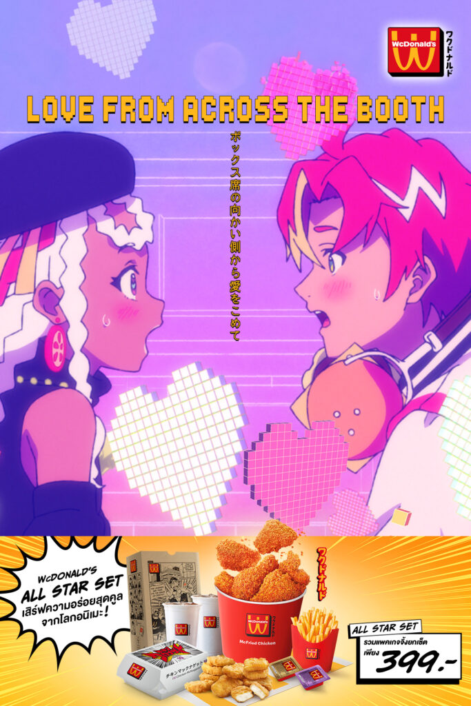 นอกจากแพคเกจจิ้งดีไซน์สุดคูลแล้ว แฟนๆ ยังสามารถสัมผัสประสบการณ์โลกอนิเมะกับภาพยนตร์สั้นอนิเมะ 4 เรื่อง 4 สไตล์ ทั้ง Romance, Action, Mecha และ Fantasy บนช่องทาง Youtube และ Facebook ของแมคโดนัลด์ ประเทศไทย รวมถึง ร้าน “WcDonald’s” ที่มาให้เหล่าแฟนอนิเมะได้ฟินแบบฉุดไม่อยู่ กับประสบการณ์แบบเรียลๆ ของการแปลงโฉมร้าน ‘McDonald’s’ สู่ “WcDonald’s” เฉพาะสาขาสยามพารากอน และ เมเจอร์รัชโยธินเท่านั้น!