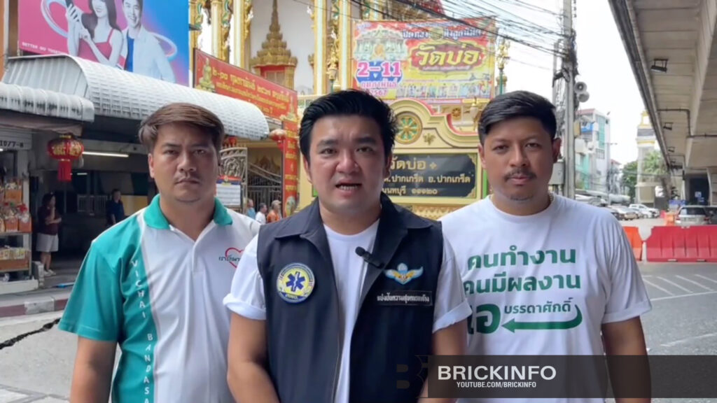 ว่าที่ร้อยตรีภาณุพงศ์ บรรดาศักดิ์ สมาชิกเทศบาลนครปากเกร็ด กล่าวว่า ตนได้รับแจ้งจากลูกบ้านว่ามีพื้นที่ทรุดตัวบริเวณหน้าปากทางเข้าวัดบ่อ ซึ่งเป็นโครงการของการไฟฟ้านครหลวง ซึ่งมีผู้รับเหมา ในการรับช่วงทำโครงการร้อยท่อสายไฟลงดินแม่น้ำเจ้าพระยา และนำไปขึ้นที่ตำบลบางตะไนย์ มีการทรุดตัวบริเวณนี้ การจราจรจากห้าแยกปากเกร็ดมีรถติดมาก ให้หลีกเลี่ยงในการเดินทาง เข้ามาที่ท่าน้ำปากเกร็ด ทางผู้รับเหมาได้เข้ามาแล้ว คาดว่าไม่เกินครึ่งชม. เครื่องจักรจะสามารถเข้ามาในพื้นที่และซ่อมแซมให้การจราจรกลับมาปกติ ส่วนทางด้านของเทศบาลนครปากเกร็ด จะดูแลเรื่องของประชาชนที่ได้รับความเสียหาย ในบริเวณใกล้เคียง บ้านเรือนใกล้เคียงหรือร้านค้า ถ้าได้รับความเสียหายให้แจ้งทางเทศบาลและให้ชาวบ้านถ่ายรูปส่งเรื่องมาได้ทันที