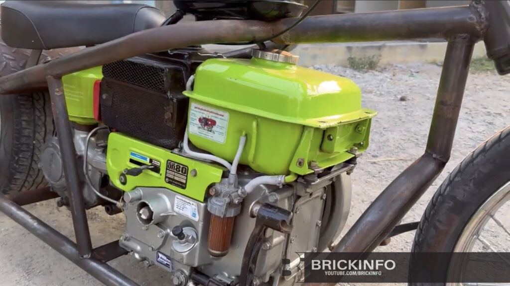 จากนั้นได้เดินทางไปพบกับนายอัศนัย (อ๊อด) พันมี อายุ 42 ปี 77/1 ม.7 ตำบลสามง่าม อำเภอดอนตูม จังหวัดนครปฐม ได้เล่าให้ฟังว่าตนเองได้ซื้อรถสร้างคันดังกล่าวมาจากนครสวรรค์ นำกลับมาขับที่ดอนตูมเห็นว่ารถแปลกดีและอีกอย่างรถคันดังกล่าวใช้เครื่องยนต์คูโบต้าซึ่งเป็นเครื่องไถนาซื้อมาในราคา 18,000 บาทจากเจ้าของเดิมซึ่งเจ้าของเดิมได้ทำโครงรถจักรยานยนต์ขึ้นมาพร้อมมีความคิดที่จะวางเครื่องยนต์คูโบต้าโดยใช้เครื่อง อีที80 หรือเท่ากับ 8 แรง เป็นเครื่องไถนาสูบน้ำทั่วไปเป็นเครื่องยนต์คูโบต้า ซื้อเครื่องยนต์จากชาวนาแล้วเอามาบิ้วใหม่ฟิตเครื่องใหม่ทำสีใหม่ และนำขึ้นโครงมาประกอบเข้ากับโครงรถจักรยานยนต์ที่สร้างขึ้นมาใหม่ และซื้อเครื่องยนต์ฮอนด้าโนวา 5 เกียร์เอามาใช้แค่ท่อนเพื่อจะใช้เกียร์เพื่อให้รถขับเคลื่อนสับเกียร์ได้โดยใช้โซ่และสายพานขับเคลื่อน ทำงานไปพร้อมกันช่วงท่อนหน้าที่ติดกับเครื่องคูโบต้าจะใช้สายพาน ช่วงต่อจากสายพานมาจะแปลงใส่วินกลม และนำมาใส่เสตอร์รถเวฟ100 มาแปลงใส่เพื่อให้ใส่โซ่ขับเคลื่อนรถได้ ส่วนท่อนท้ายใช้ล้อแม๊กรถเก๋งยึดน๊อตติดกับเสตอร์ให้ขับเคลื่อนรถสามารถขับได้และซ่อมบำรุงถอดเปลี่ยนได้ส่วนด้านหน้าใช้ล้อรถจักรยานยนต์ใส่ดิสเบรกหน้าเพื่อใช้ในการหยุดรถได้