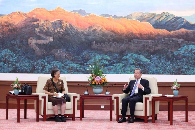หวังอี้ กล่าวว่า กรมสมเด็จพระเทพฯ ทรงมีคุณูปการต่อมิตรภาพจีน-ไทย มาเนิ่นนานหลายทศวรรษ และประชาชนชาวจีนเทิดทูนคุณูปการดังกล่าวอย่างยิ่ง โดยจีนยกย่องมิตรภาพอันยืนยาวกับราชวงศ์ไทย และยินดีทำงานร่วมกับไทยเพื่อดำเนินการตามฉันทามติระดับสูงระหว่างสองประเทศ และผลักดันความก้าวหน้าใหม่ในการสร้างประชาคมจีน-ไทย ที่มีอนาคตร่วมกัน