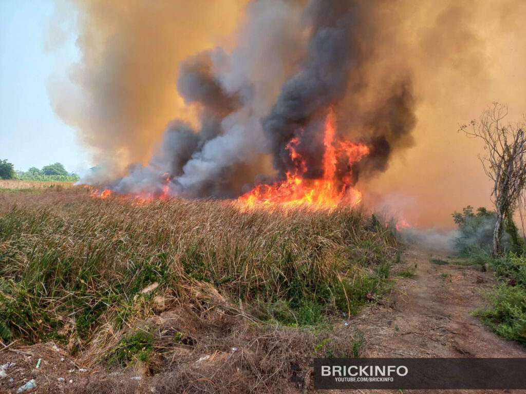 นครปฐม! ระทึกครู พากันเก็บข้าวของเอกสารสำคัญวิ่งหนีตาย หลังไฟไหม้ต้นปรือที่ติดอยู่กับหลังกำแพงโรงเรียน