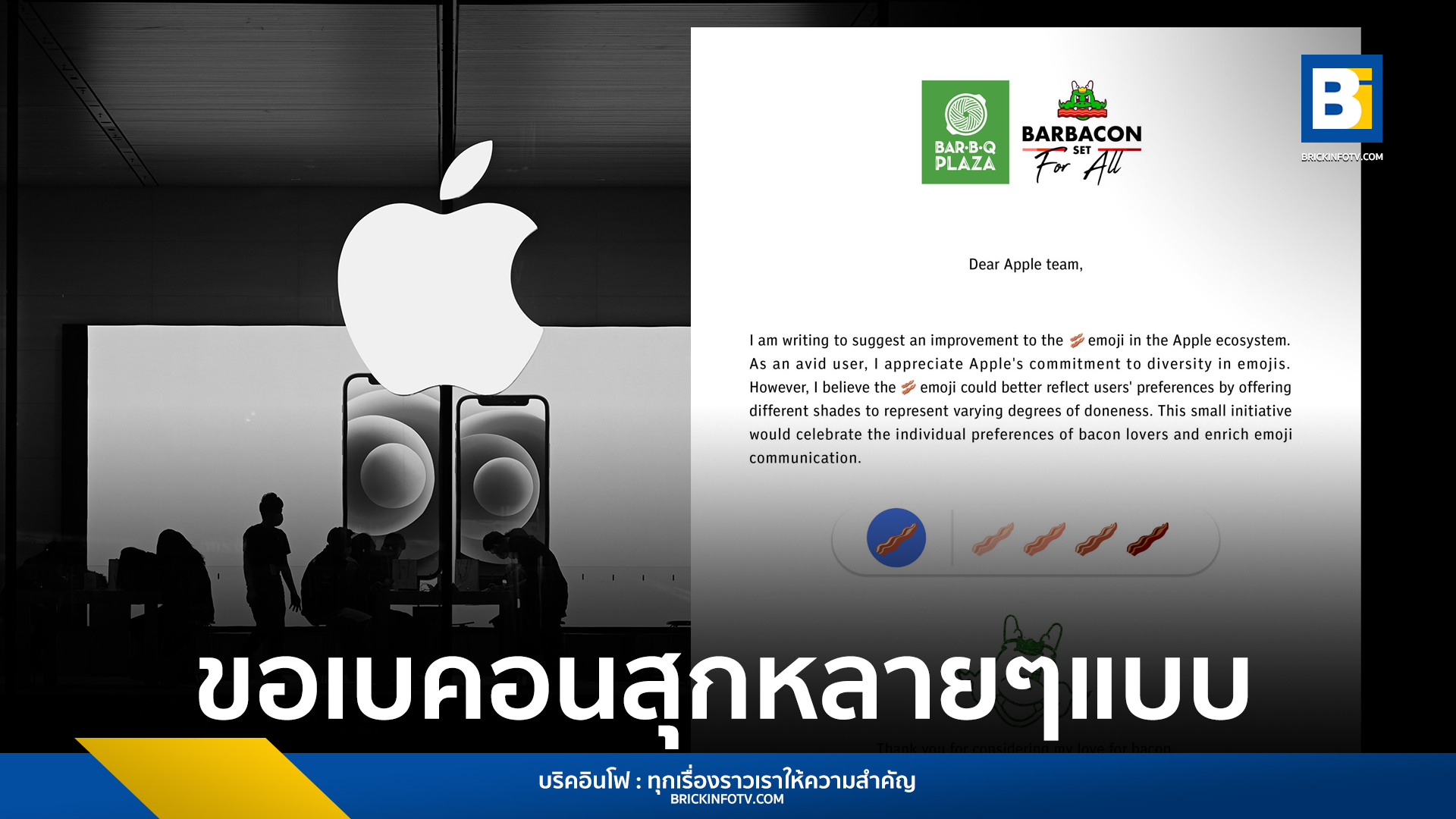 บาร์บีคิวพลาซ่า ออกหนังสือเรียกร้อง Apple แก้ Emoji เบคอน ให้ปรับเลือกระดับความสุกได้