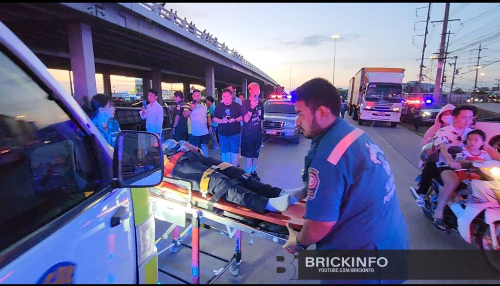 เกิดเหตุรถบัสรับส่งพนักงาน ยางระเบิดพลิกคว่ำตกข้างทางพนักงานบาดเจ็บหลายราย
