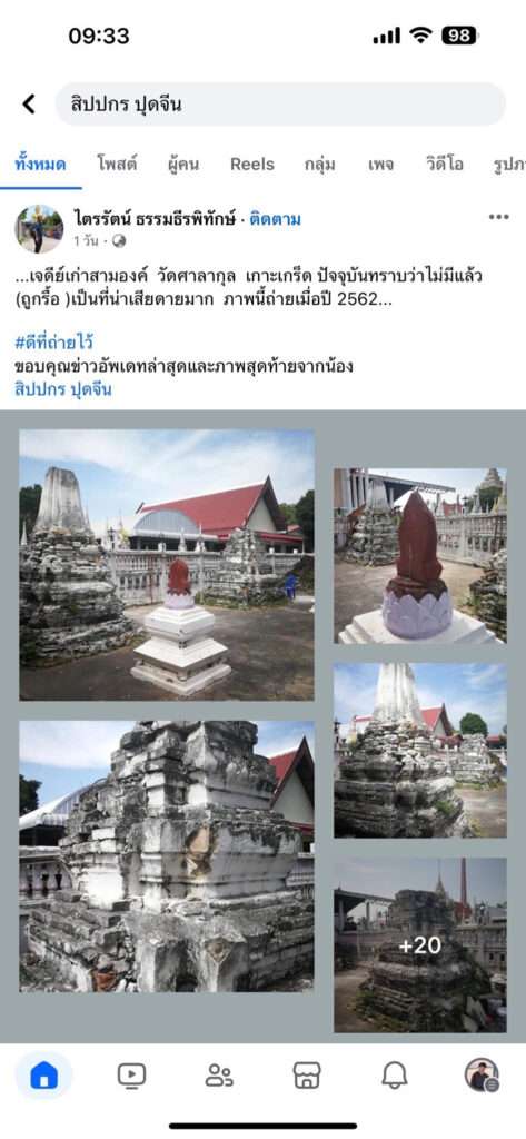 จากกรณีมีผู้ใช้เฟซบุ๊ครายหนึ่ง โพสต์ภาพพร้อมระบุข้อความไว้ว่า “เจดีย์เก่าแก่ที่อยู่ด้านหลังโบสถ์วัดศาลากุล ต.เกาะเกร็ด อ.ปากเกร็ด จ.นนทบุรี หายไป โดยไม่ทราบว่าหายไปไหน”