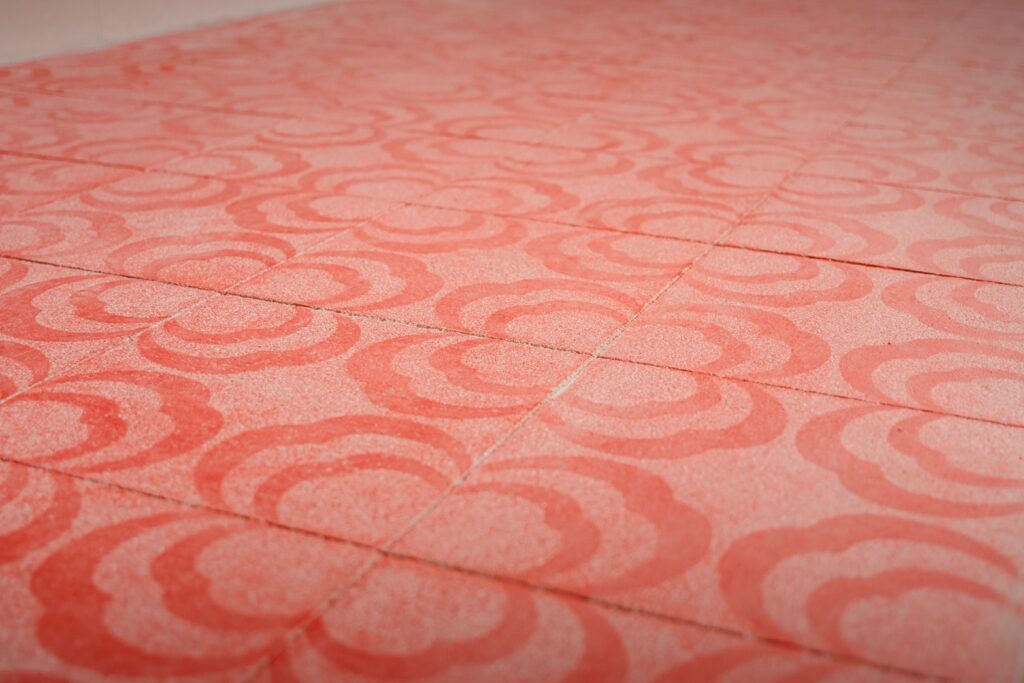 กระเบื้องปูทางเท้าลวดลายเป็นดอกโบตั๋นนี้ ไม่ใช่แค่เรื่องของความสวยงามเท่านั้น แต่ในยังแฝงนวัตกรรมใหม่ ๆ เข้ามาด้วย นั่นคือ เทคโนโลยีการพ่นผิว (Shot Blast) ในการสร้างลวดลาย ใช้หลักการเหวี่ยงจากใบพัด หรือ Turbine ให้ผงโลหะกระทบต่อผิวกระเบื้อง เป็นกระบวนการเปิดผิวหน้าชิ้นงาน พื้นผิวส่วนที่ถูกเปิดผิวหน้าขึ้นจะเห็นเม็ดหินที่เป็นส่วนผสมของชั้นสีด้านใน สร้างให้เกิดลวดลายที่คงทนกว่าการพ่นสีทั่วไป และทำให้มีผิวที่หยาบขึ้น ทำให้ไม่ลื่น ทำความสะอาดง่าย เพิ่มความปลอดภัยต่อผู้ใช้ทางทุกคน