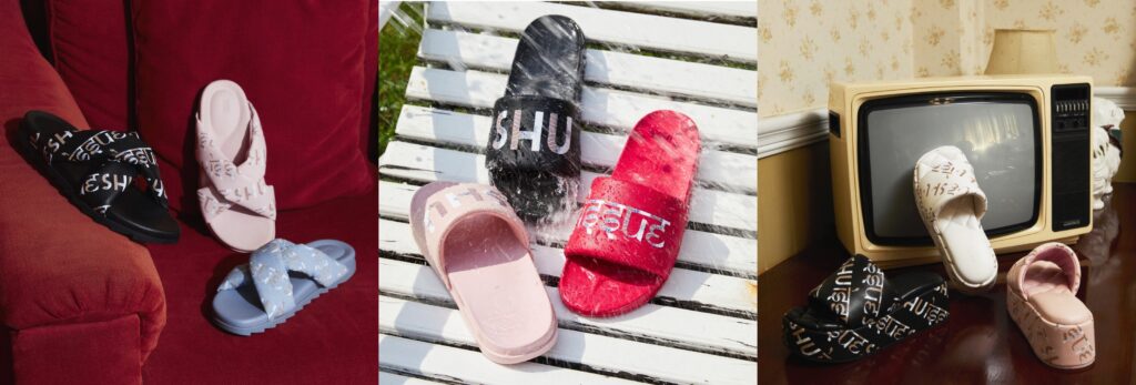 - SHU X ISSUE PALETTE SOFT 2” EASY SLIDE WEDGES : รุ่นนี้มีการพัฒนาใหม่ให้รองเท้ามีน้ำหนักที่เบาขึ้นและนุ่มขึ้นด้วยเทคโนโลยี PALETTE SOFT และเทคนิคการพิมพ์ลาย UV ที่พิเศษกว่าการพิมพ์ 3D ด้วยลวดลายที่นูนขึ้นจากวัสดุหนัง