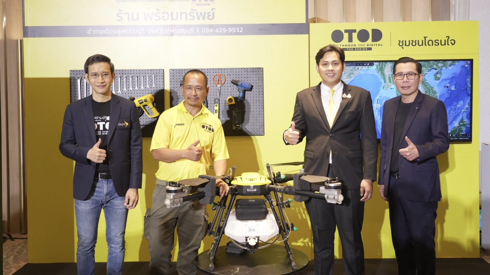 ด้าน ผศ.ดร.ณัฐพล นิมมานพัชรินทร์ ผู้อำนวยการใหญ่ ดีป้า กล่าวว่า โครงการ OTOD (ชุมชนโดรนใจ) ดำเนินการมาตั้งแต่เดือนพฤศจิกายน 2566 โดยร่วมมือกับพันธมิตรทั้งภาครัฐและเอกชน ขับเคลื่อนเศรษฐกิจและสังคมดิจิทัล ผ่านการพัฒนาโครงสร้างพื้นฐานด้านดิจิทัล เช่น ศูนย์ฝึกอบรมและออกใบอนุญาตโดรน 5 แห่งทั่วประเทศ ระบบขอใบอนุญาตออนไลน์ Academy and Licensing Platform หลักสูตรการฝึกอบรมที่ได้รับการรับรองจาก CAAT และมาตรฐานโดรนสัญชาติไทย รวมถึงการสร้างระบบนิเวศดิจิทัล โดยส่งเสริมการใช้โดรนเพื่อการเกษตร จัดตั้งศูนย์ซ่อมโดรน 50 แห่ง สร้างเครือข่ายเกษตรกร และจัดการแข่งขันโดรนระดับประเทศ