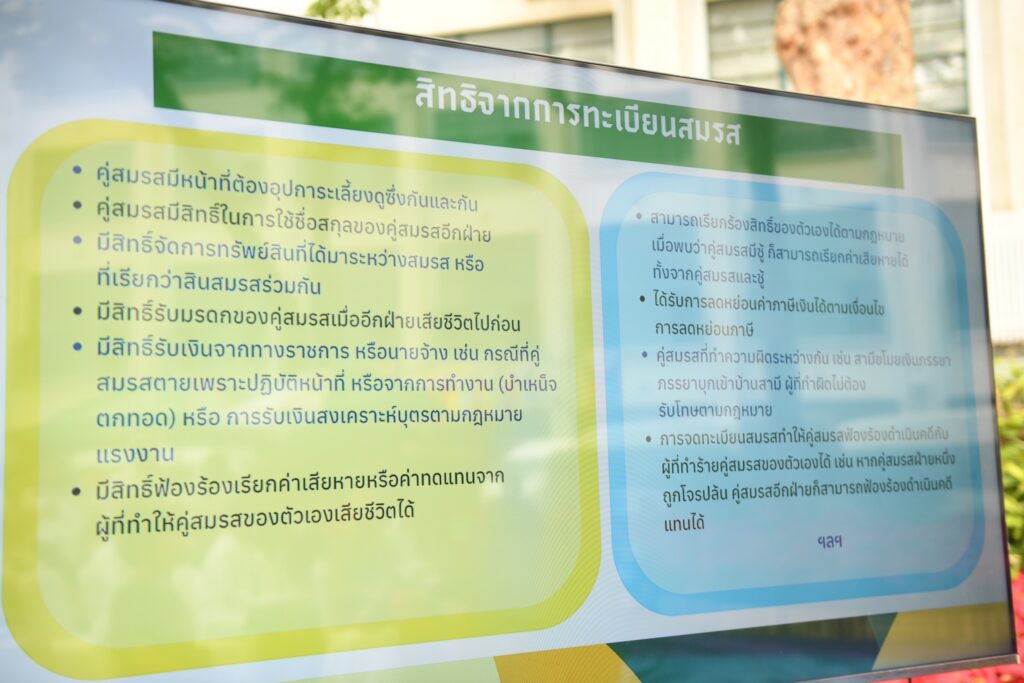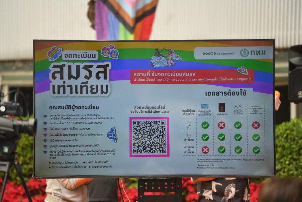 ทั้งนี้ กฎหมายสมรสเท่าเทียม ได้รับการประกาศในราชกิจจานุเบกษา เมื่อวันที่ 24 กันยายน 2567 และจะมีผลบังคับใช้เมื่อพ้น 120 วัน นับแต่วันประกาศ โดย กทม. ได้เตรียมความพร้อมมาอย่างต่อเนื่อง เช่น การจัดกิจกรรมเฉลิมฉลองสมรสเท่าเทียมที่ศูนย์การค้าสยามพารากอน การชี้แจงสิทธิประโยชน์ตามกฎหมาย และการลงทะเบียนล่วงหน้า