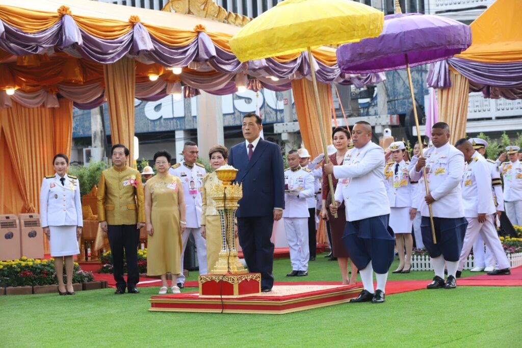กรุงเทพฯ, 25 ม.ค. 68 สำนักข่าวบริคอินโฟ – พระบาทสมเด็จพระเจ้าอยู่หัว และสมเด็จพระนางเจ้าฯ พระบรมราชินี เสด็จพระราชดำเนินทรงเปิดซุ้มประตูเฉลิมพระเกียรติ 2 แห่ง คือ “วชิรสถิต 72 พรรษา” ที่บริเวณสะพานดำรงสถิต และ “วชิรธำรง 72 พรรษา” ที่บริเวณห้าแยกหมอมี ถนนเจริญกรุง เพื่อเฉลิมพระเกียรติเนื่องในโอกาสพระราชพิธีมหามงคลเฉลิมพระชนมพรรษา 6 รอบ 28 กรกฎาคม 2567 ภายใต้โครงการ “เบญจกตัญญุตา บารมีแห่งมังกรสยาม” โดยมี นางสาวแพทองธาร ชินวัตร นายกรัฐมนตรี นายชัชชาติ สิทธิพันธุ์ ผู้ว่าราชการกรุงเทพมหานคร คณะรัฐมนตรี และองค์กรชาวไทยเชื้อสายจีน เฝ้าฯ รับเสด็จ