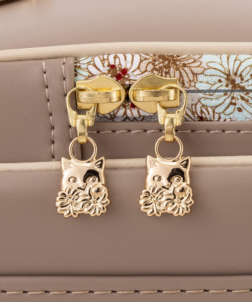 กระเป๋ารุ่น “Chrysanthème Chat Randoseru” จาก Paul & Joe โดดเด่นด้วยหูแมวที่สะดุดตา และรายละเอียดอื่นๆ เช่น หนวดและจมูกแมวบริเวณด้านล่างของฝาปิด เหนือตัวล็อคที่ออกแบบเป็นรูปโบว์ ภายในกระเป๋าตกแต่งด้วยลวดลายผ้าลายดอกเบญจมาศ และที่รูดซิปเป็นรูปแมวและดอกเบญจมาศ
