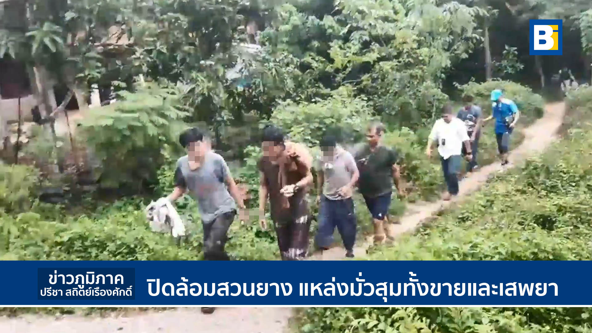 จนท.ปิดล้อมสวนยางที่ใช้เป็นแหล่งมั่วสุมทั้งขายและเสพยา จับกุมผู้ต้องหาได้ยกทีม