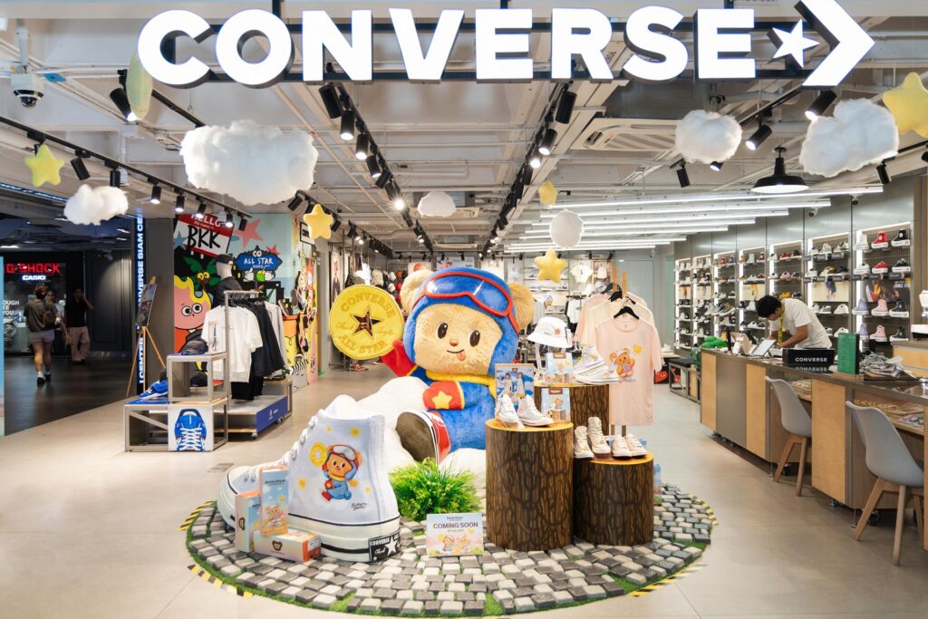 ถัดมาคือการร่วมมือสุดพิเศษ Converse x Butterbear “Chasing the Sun & the Star” คอลเลกชันเอ็กซ์คลูซีฟที่มีจำหน่ายเฉพาะที่ Converse Flagship Store ชั้น M สยามเซ็นเตอร์ เท่านั้น คอลเลกชันนี้ได้แรงบันดาลใจจากความน่ารักของ Butterbear ซึ่งเป็นคาแรกเตอร์ที่นำความสดใสมาสู่แฟน ๆ ทั่วโลก สินค้าในคอลเลกชันนี้ประกอบด้วย รองเท้า Converse Chuck 70 ทั้งแบบ High Top และ Low Top พร้อมเชือกรองเท้าและเข็มกลัดน่ารัก เสื้อ หมวกบักเก็ต และถุงเท้า โดยมี Butterbear สองคาแรกเตอร์หลัก ได้แก่ “Chasing the Sun” ในชุดสีชมพูพาสเทลและรองเท้า Converse Chuck สีฟ้าอมม่วง และ “Chasing the Star” ในลุคนักบินกับรองเท้า Converse สีแดง
