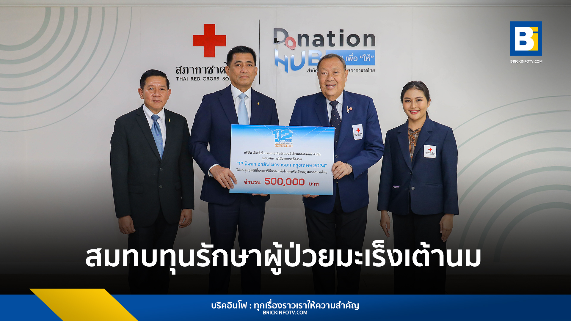 บริษัท เอ็น.ซี.ซี. แมนเนจเม้นท์ แอนด์ ดิเวลลอปเม้นท์ จำกัด ผู้บริหารศูนย์การประชุมแห่งชาติสิริกิติ์ โดยคุณสุรพล อุทินทุ กรรมการผู้จัดการ ได้มอบเงินรายได้หลังหักค่าใช้จ่ายจากการจัดงาน “12 สิงหา ฮาล์ฟ มาราธอน กรุงเทพฯ 2024” จำนวน 500,000 บาท ให้แก่สภากาชาดไทย เพื่อนำไปสมทบทุนศูนย์สิริกิติ์บรมราชินีนาถ (เพื่อโรคมะเร็งเต้านม) โรงพยาบาลจุฬาลงกรณ์ โดยมีวัตถุประสงค์เพื่อสนับสนุนการรักษาผู้ป่วยโรคมะเร็งเต้านมอย่างต่อเนื่อง
