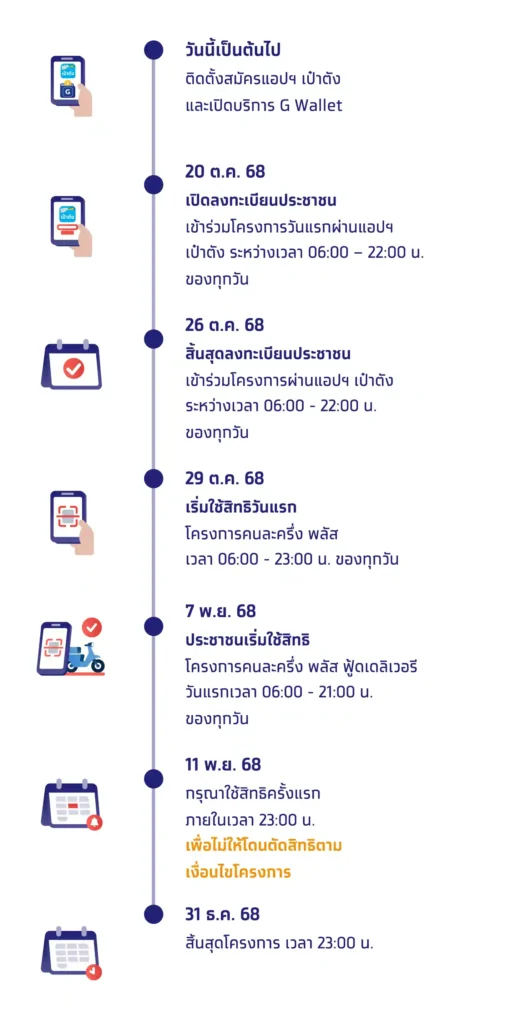 เปิดไทม์ไลน์ “คนละครึ่ง พลัส” เริ่มใช้สิทธิวันแรก 29 ต.ค. 68 พร้อมมีกำหนดบังคับใช้จ่ายครั้งแรกก่อนถูกตัดสิทธิ