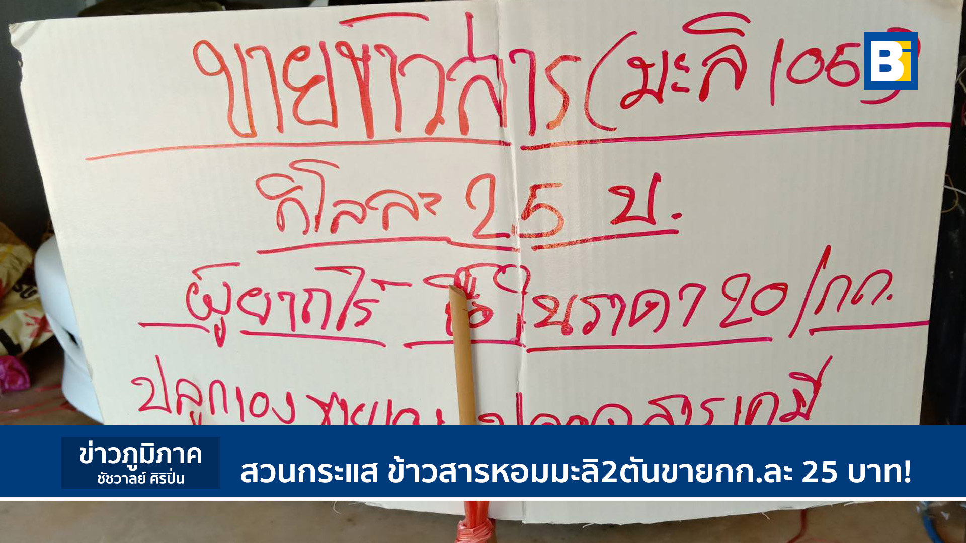 ผู้สื่อข่าวได้รับแจ้งว่ามีอดีตผู้ช่วยผู้ใหญ่บ้านสีข้าวหมอมะลิ 105 แท้ขายถูก กก.ละ 25 บาทจำนวน 2 ตัน ผู้สูงอายุจำหน่ายให้ราคา 20 บาท คนยากไร้ แจกฟรีคนละ 2 กก.หลังรับแจ้งลงพื้นไปยังบ้านเลขที่96 ม.4 ต.ย่านรี อ.กบินทร์บุรี จ.ปราจีนบุรี พบกับนายจำรัส เมฆษา อายุ 47 ปีอดีตผู้ช่วยผู้ใหญ่บ้านม.4 ต.ย่านรี นายจำรัสกล่าวว่า ตนเองทำนาปีราว 30 ไร่ ทำนาข้าวหอมมะลิ 105 เมื่อถึงฤดูเก็บเกี่ยวขายข้าวได้เกวียนละ 7,500บาทซึ่งยังไม่ได้รับค่าชดเชยจากภาครัฐจึงตัดสินใจเกี่ยวข้าวแบ่งขายไปราว 4 เกวียน ที่เหลือแบ่งไว้สี 2 เกวียนและหวนคิดถึงคนในชุมชนและคนรู้จักอยากให้ได้กินข้าวดีราคาถูกจึงสีเป็นข้าวสารแล้วเอามาวางขายที่บ้านจากการขายถูกมีเพื่อนสนิทและคนรู้จักแวะเวียนมาขอซื้อไปไว้กินคนละหลายถัง เกวียนแรกเหลือไม่ถึง 200 กก.และเหลือข้าวเปลือกที่ยังไม่ได้สีอีก 1 เกวียน อีก 2 วันจะเอาไปสีเป็นข้าวสารมาใหม่ป้าลำดวน ชาชาติ อายุ62 ปี อยู่บ้านเลขที่ 110ม.4 และป้าประทวน รักศรี อายุ 64 ปี อยู่บ้านเลขที่ 24 ม.4ทราบข่าวได้เดินทางมาขอซื้อข้าวสารหอมมะลิ ซึ่งนายจำรัสให้ข้าวสารหอมมะลิไปหุงกินที่บ้านคนละ 2กก.เนื่องจากป้าทั้ง 2เป็นผู้สูงอายุที่ยากไร้ขณะนี้มีลูกค้าต่างจังหวัดโทร.มาสั่งไว้คนละ 30-40 ถัง นายจำรัสกล่าวอีกว่าถ้ามีคนสั่งจองมาเพิ่มอีกตนก็จะซื้อข้าวเปลือกหอมมะลิในพื้นใกล้เคียงมาสีเป็นข้าวสารไว้รองรับลูกค้าอีกครั้งหนึ่ง การที่มีข้าวสารหอมมะลิขายราคาถูกในครั้งนี้ก็เพื่ออยากให้พี่น้องได้กินของดีแต่ถูกถือว่าเป็นการทำบุญก่อนส่งท้ายปีเก่าต้อนรับปีใหม่สักครั้งท่านใดสนใจติดต่อสอบถามข้อมูลเพิ่มเติมได้ทางหมายเลขโทรศัพท์093-252-5080 ของดีมีน้อยหมดแล้วหมดเลย.