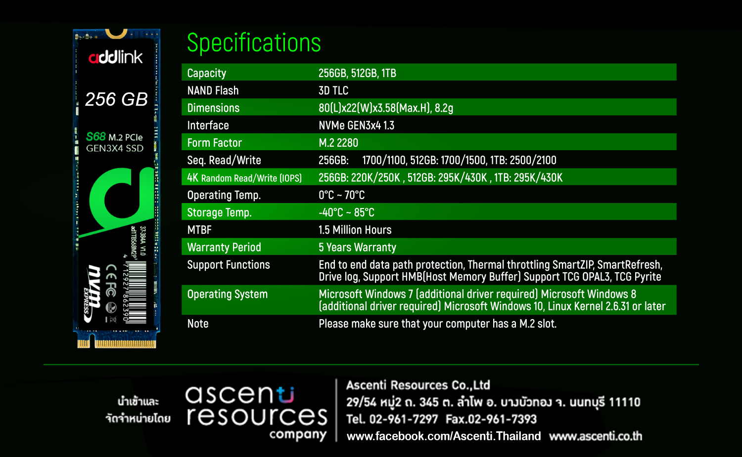 บริษัท เอสเซนตี้ รีซอร์สเซส จำกัด ผู้นำเข้าและจัดจำหน่าย สินค้าไอที แบรนด์ดังระดับโลก เปิดตัว Addlink S68 SSD M.2 NVMe คุ้มค่า ราคาประหยัด พร้อมประกันสุดพรีเมี่ยม 5 Year!