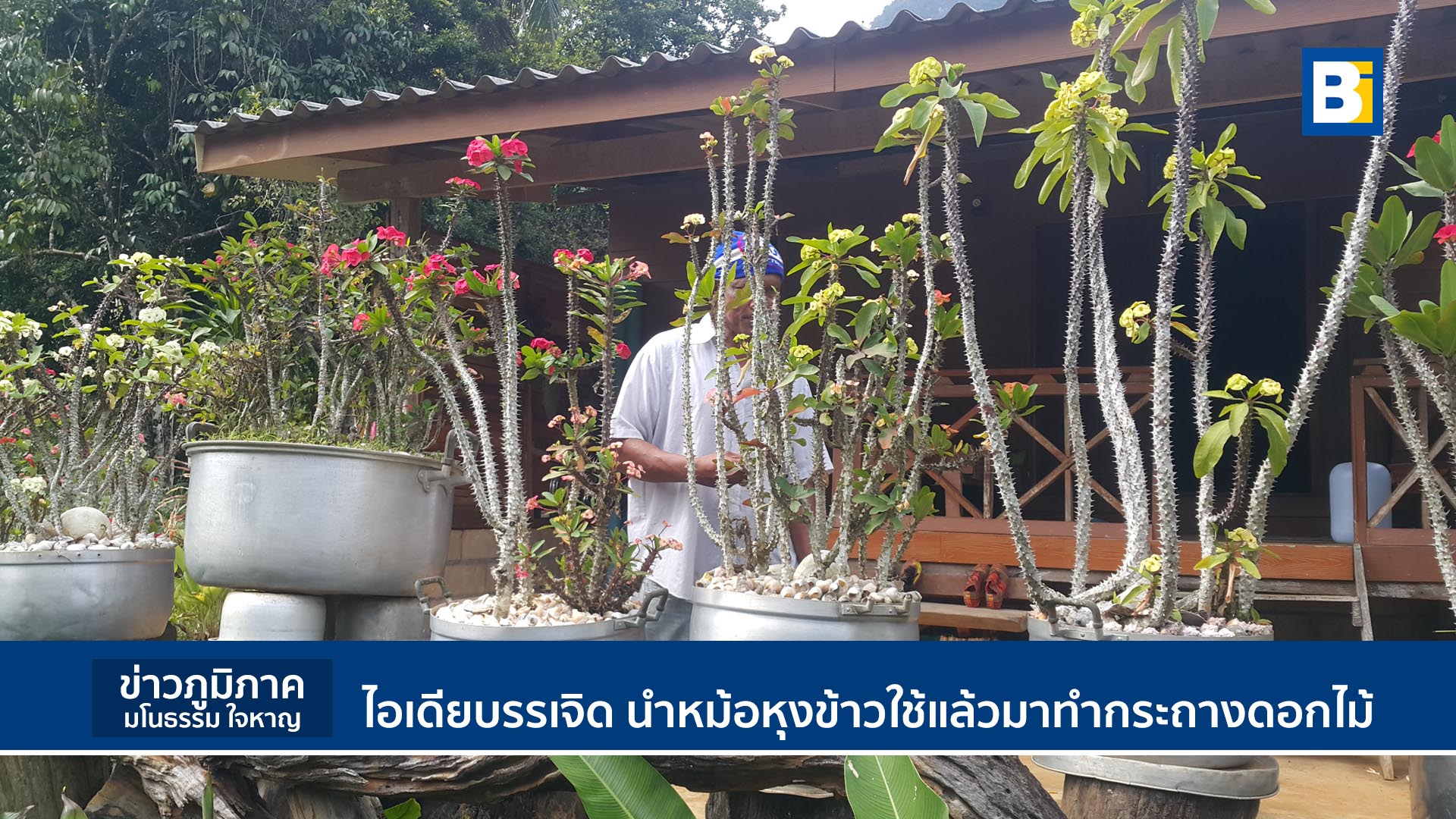 หนุ่มใหญ่ ไอเดียไม่ซ้ำใคร นำหม้อหุงข้าวใช้แล้วมาทำกระถางดอกไม้ ประดับรอบบ้าน สวยงามแปลกตาแต่น่ามอง
