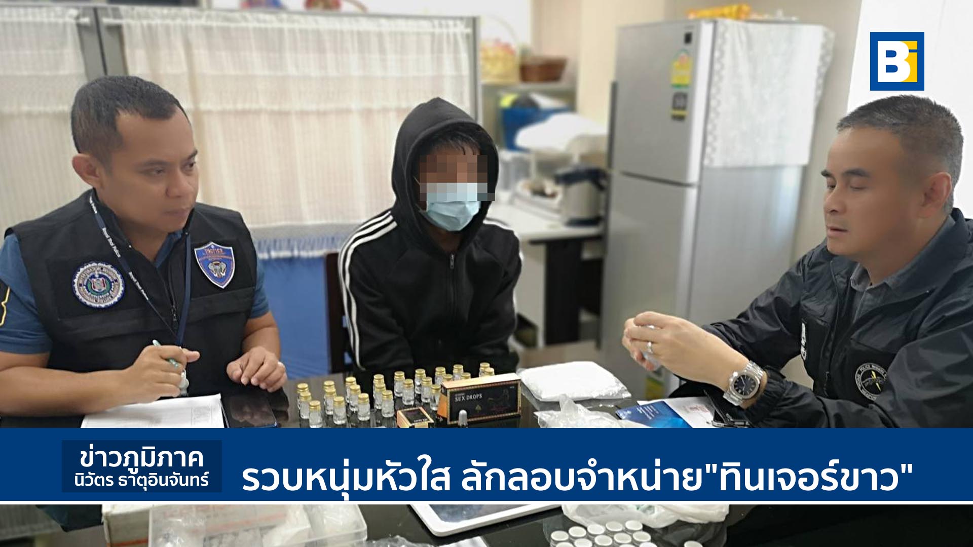รวบหนุ่มหัวใส ลักลอบจำหน่าย”ทินเจอร์ขาว”ยาเสียสาวทางอินเตอร์เน็ตมีผู้ใช้บริการจำนวนมาก สุดท้ายจนมุมตำรวจ