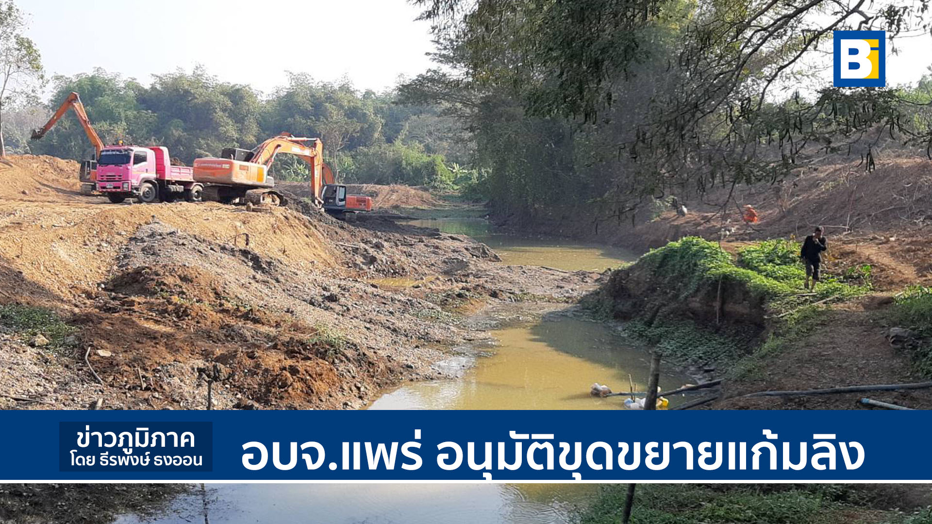 เพื่อชาวบ้าน !!! อบจ.แพร่ อนุมัติให้ เครื่องจักรกลและจนท..กองช่างฯขุดขยายแก้มลิง ลำห้วยแม่สิน