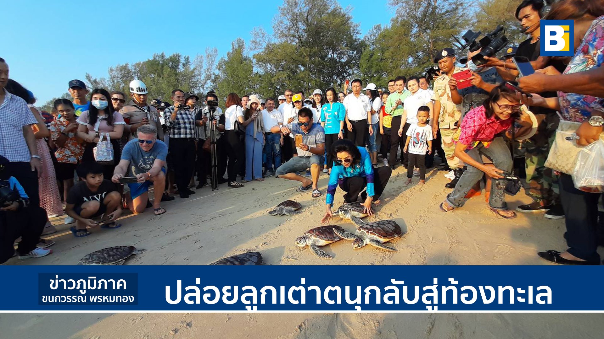 พังงา-รองนายกฯจุรินทร์ร่วมปล่อยลูกเต่าตนุกลับสู่ท้องทะเลรวม 70 ตัว เปิดงานประเพณีปล่อยเต่าปี2563