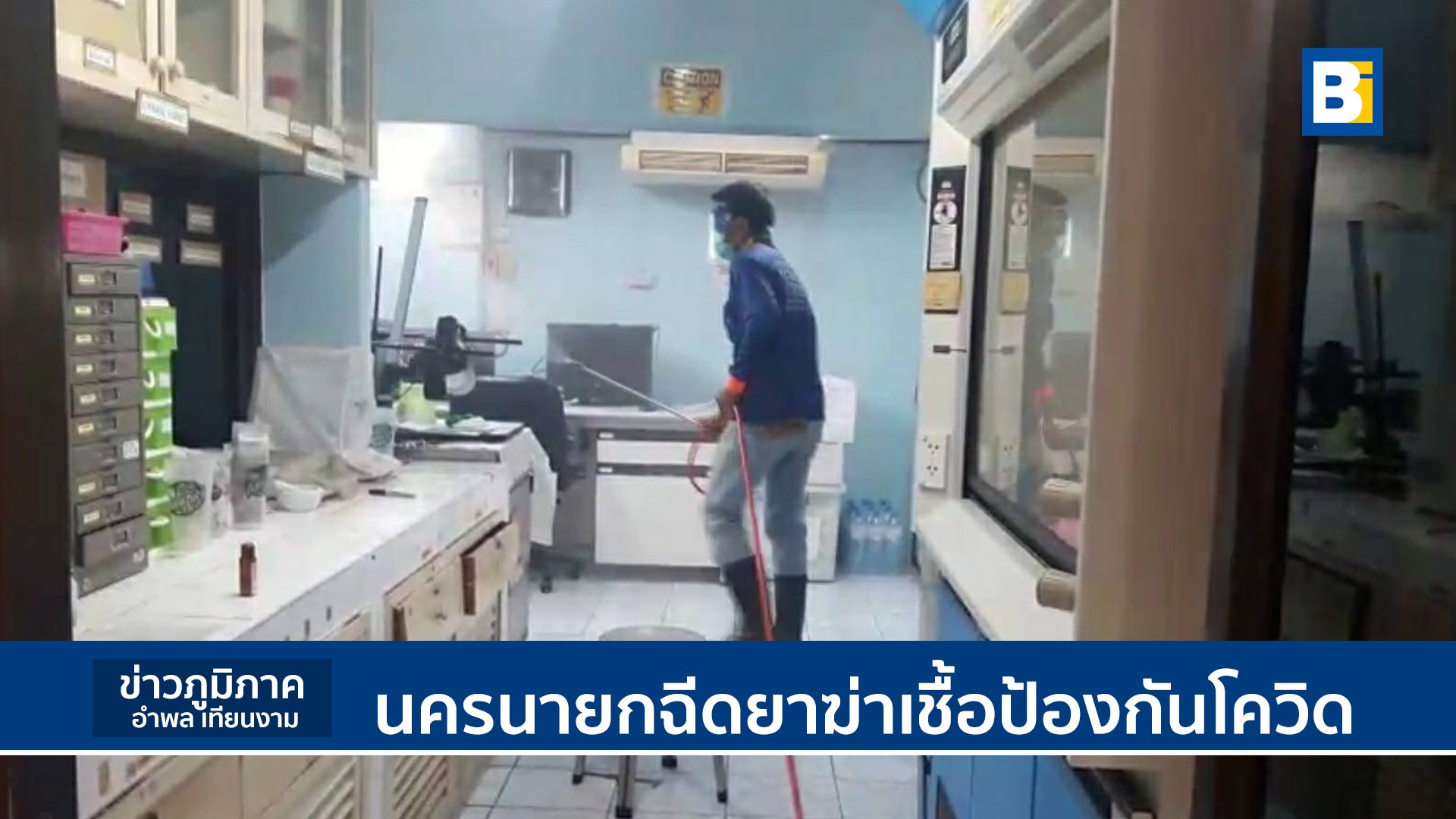 นครนายก-เทศบาลเมืองนครนายกฉีดยาฆ่าเชื้อป้องกันโควิด