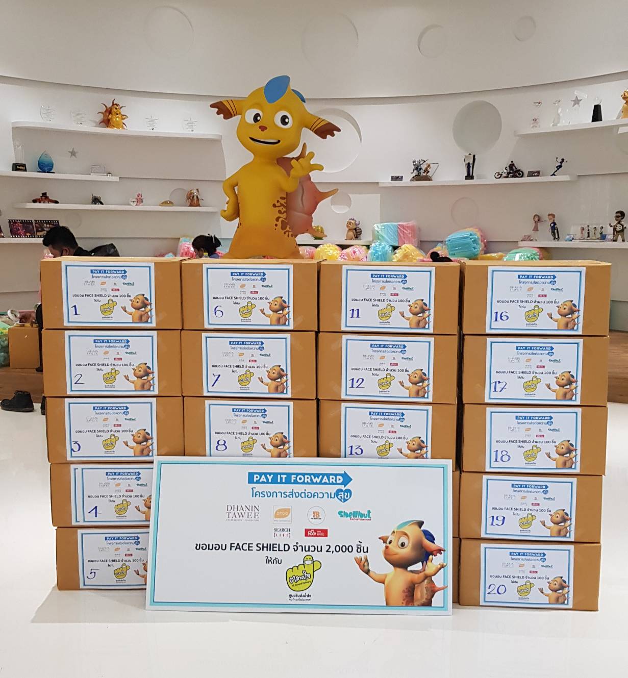 โดยเบื้องต้นทางโครงการฯ ตั้งเป้าผลิตหน้ากาก Face Shield ให้ได้จำนวน 20,000 ชิ้น และได้รับการสนับสนุนเพิ่มเติมจาก มูลนิธิธนินท์ เทวี เจียรวนนท์ และกลุ่มบริษัทดีทีจีโอ อีก 20,000 ชิ้น (รวม 40,000 ชิ้น) เพื่อกระจายความช่วยเหลือไปให้ถึงบุคลากรทางการแพทย์, พระสงฆ์ และพี่น้องชาวไทยที่เดือดร้อนจากสถานการณ์ โควิด 19 ให้ได้อย่างทั่วถึงทุกภาคส่วนทั่วประเทศ