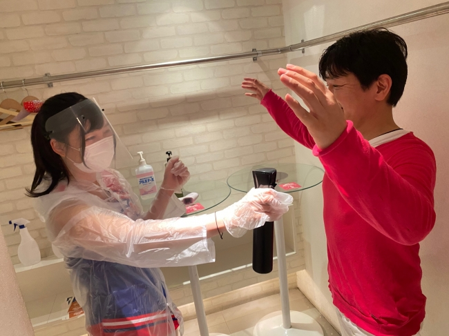 นอกจากหน้ากากอนามัยแล้ว ทางร้านยังได้เตรียม ถุงมือยาง และ Face Shield ไว้ให้กับลูกค้าเพื่อป้องกันสารคัดหลังที่อาจกระจายลงบนใบหน้าหรือแพร่กระจายออกจากลูกค้าแต่ละคนด้วย รวมถึงพนักงานก็จะสวมใส่ถุงมืออยู่ตลอดระยะเวลาการให้บริการ