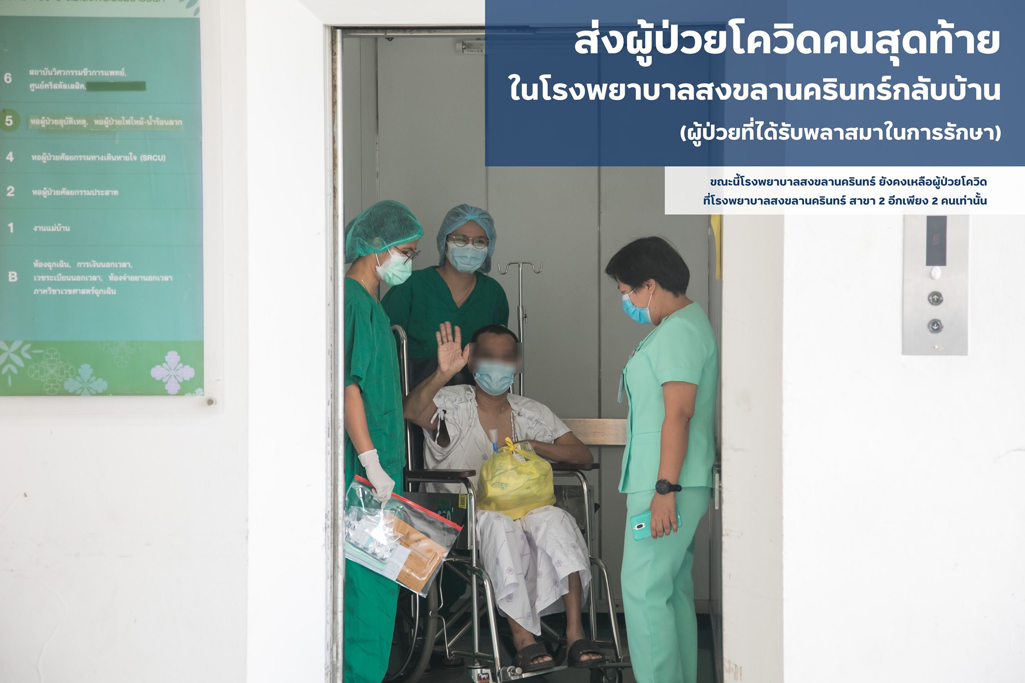 ทั้งนี้ หลังจากที่ส่งต่อมายังโรงพยาบาลสงขลานครินทร์ ผู้ป่วยมีค่าออกซิเจนในเลือดและค่าหัวใจต่ำลง ภาวะหายใจล้มเหลว ต้องใส่ท่อหายใจ คณะแพทย์ผู้ทำการรักษาจึงพิจารณาให้การรักษาเสริม โดยใช้พลาสมาที่ได้รับบริจาคจากผู้ป่วยที่เข้ารับการรักษาโควิด-19 จากโรงพยาบาล โดยทีมแพทย์ได้ทำการรักษาให้พลาสมาครั้งละ 200 ซีซี จำนวน 2 ครั้ง และผลปรากฎว่าในระยะเวลา 3-4 วัน ผู้ป่วยมีอาการดีขึ้น โดยเฉพาะค่าการหายใจและค่าหัวใจดีขึ้น ภาวะการอักเสบต่างๆ ลดลง ค่าไวรัสที่คอหอยและในเสมหะมีปริมาณน้อยมากจนตรวจวัดไม่ได้ จนสามารถถอดเครื่องช่วยหายใจได้และอาการปอดอักเสบดีขึ้น จนปัจจุบันผู้ป่วยหายเป็นปกติ และสามารถเดินทางกลับภูมิลำเนาแล้ว นับเป็นผู้ป่วยรายสุดท้ายของโรงพยาบาลสงขลานครินทร์
