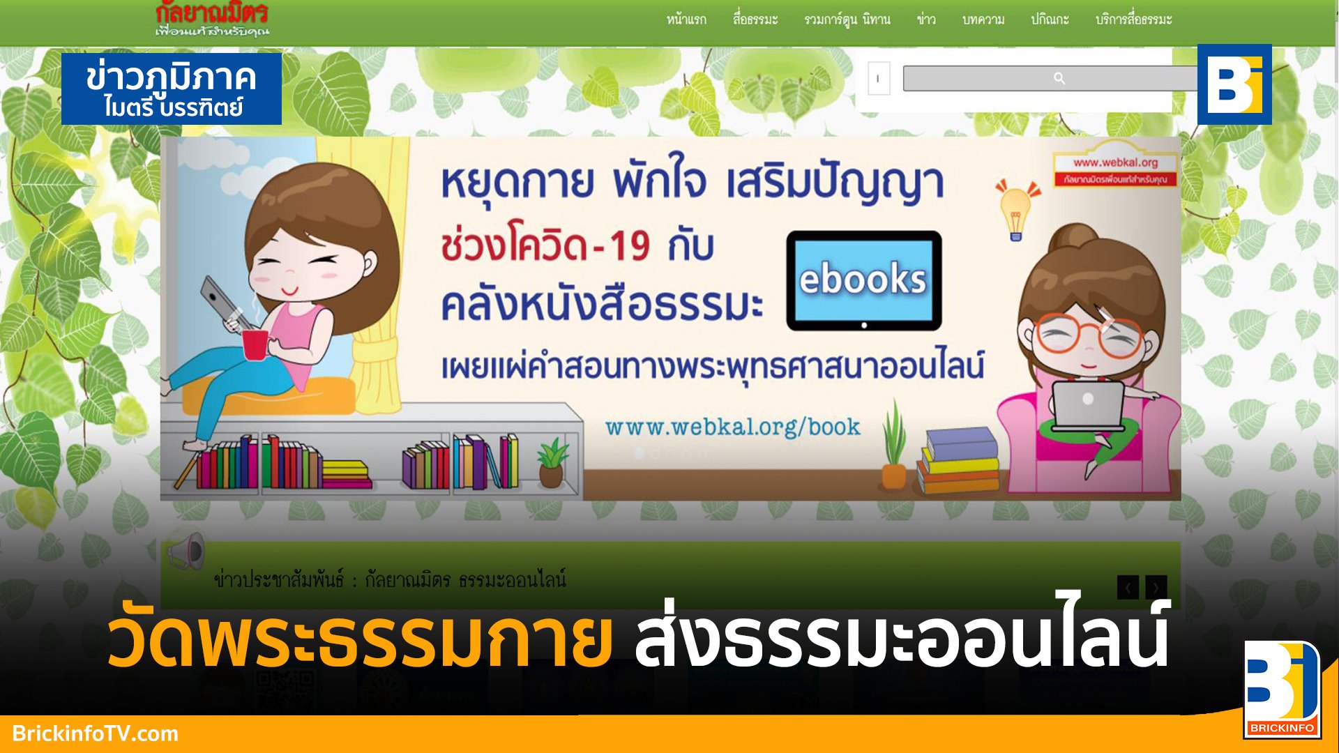 พระครูสมุห์สนิทวงศ์ วุฑฺฒิวํโส ผู้อำนวยสำนักสื่อสื่อสารองค์กร วัดพระธรรมกาย เปิดเผยว่า เว็บไซต์กัลยาณมิตร http://kalyanamitra.org/book/index_dhammabook.php จัดทำหนังสือธรรมะออนไลน์ “หยุดกาย พักใจ เสริมปัญญา ช่วงโควิด-19 กับคลังหนังสือธรรมะ E-books” รวมกว่า 1,000 รายการ อาทิ หนังสือ กฎเเห่งกรรม สวรรค์ นรก มงคลชีวิต นิทานธรรม ชาดก การ์ตูนธรรมะ หนังสือสวดมนต์ ประวัติหลวงปู่วัดปากน้ำภาษีเจริญ ความรู้พระไตรปิฎก สมาธิ ปฏิบัติธรรม วิปัสสนากรรมฐาน หลักธรรมในการดำเนินชีวิต ความรักและกำลังใจ เป็นต้น นอกจากนี้ ยังมีหนังสือธรรมะภาษาอังกฤษ ฝรั่งเศส จีน ญี่ปุ่น เยอรมัน และ เมียนมา โดยมีการจัดหมวดหมู่ดังนี้ กฎเเห่งกรรม สวรรค์ นรก ที่นี่มีคำตอบ 44 เล่ม, มงคลชีวิต นิทานธรรม ชาดก การ์ตูนธรรมะ 42 เล่ม, สวดมนต์ บทสวดวัดพระธรรมกาย 24 เล่ม, หลวงพ่อสด หลวงปู่วัดปากน้ำภาษีเจริญ 17 เล่ม, ทาน ศีล ภาวนา 63 เล่ม, ความรัก กำลังใจ 54 เล่ม, ความรู้พระไตรปิฎก 107 เล่ม, สมาธิ ปฎิบัติธรรม วิปัสสนากรรมฐาน 5 เล่ม, หลักธรรมในการดำเนินชีวิต 85 เล่ม, คำสอนหลวงพ่อทัตตชีโว 53 เล่ม, คำสอนคุณยาย 24 เล่ม, ชีวประวัติเเละสดุดีนักสร้างบารมี 7 เล่ม, ประวัติศาสตร์วัด 3 เล่ม, หนังสือธรรมะภาษาฝรั่งเศส 3 เล่ม, เยอรมัน 2 เล่ม, ญี่ปุ่น 10 เล่ม, เมียนมา 3 เล่ม, จีน 53 เล่ม, อังกฤษ 47 เล่ม, DOU 38 เล่ม, วารสารอยู่ในบุญฉบับรายเดือน 176 เล่ม, วารสารอยู่ในบุญฉบับยุโรป EU / USA 33 เล่ม และนิตยสาร HOPE MAGAZINE / V-PEACE / Dhamma Time 87 เล่ม