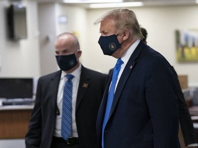 “ผมอาจจะสวมหน้ากาก” ทรัมป์เคยบอกกลุ่มนักข่าวก่อนเดินทางเยือนศูนย์การแพทย์ทหารแห่งชาติวอลเตอร์ รีด (WRNMMC) ในเบเธสดา รัฐแมรีแลนด์ เพื่อเยี่ยมทหารที่บาดเจ็บและเจ้าหน้าที่การแพทย์ที่ทำงานยับยั้งโรคติดเชื้อไวรัสโคโรนาสายพันธุ์ใหม่ (โควิด-19)