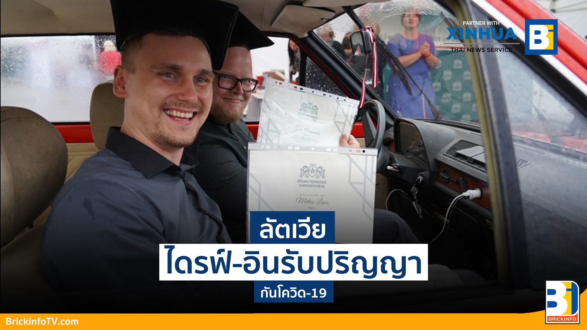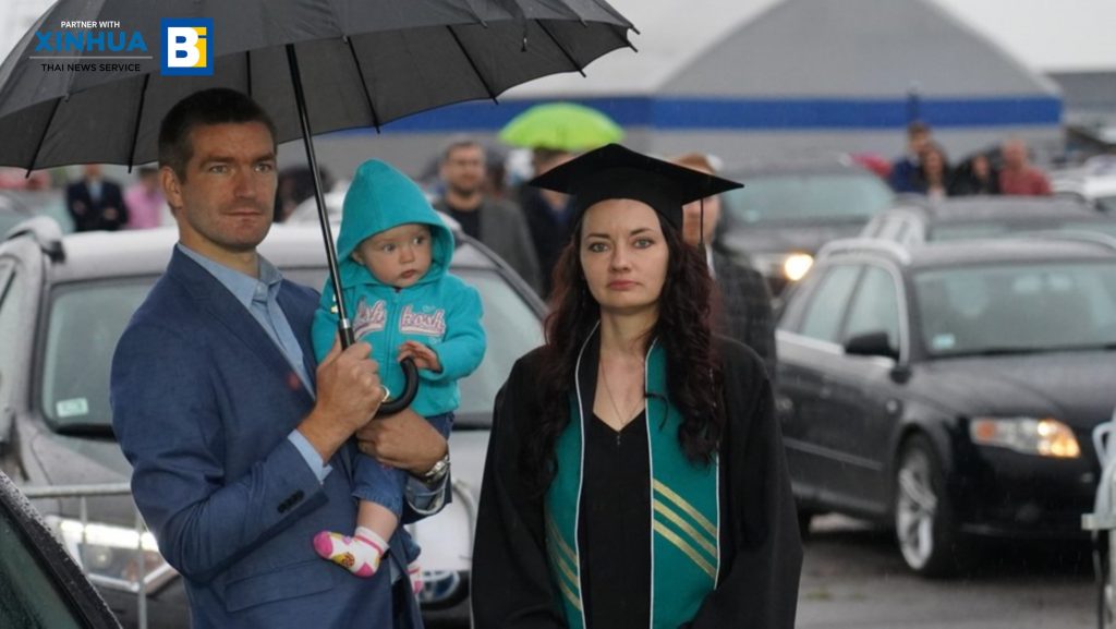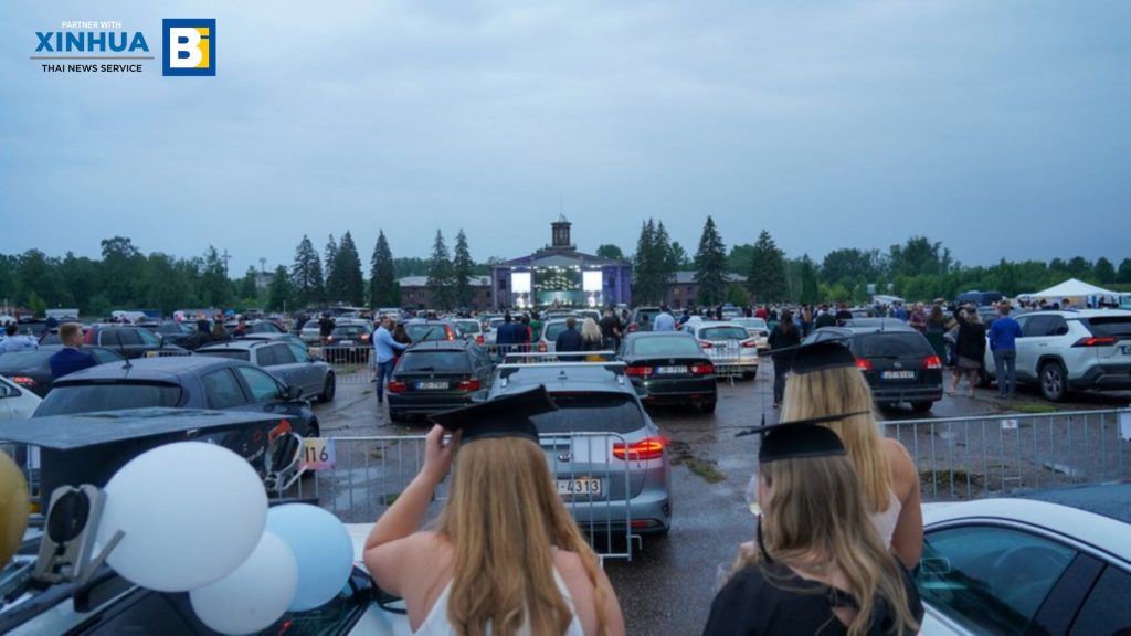 สำนักข่าวซินหัว เผยแพร่ภาพ มหาวิทยาลัยเทคนิคริกา (Riga Technical University) จัดพิธีรับปริญญาบัตรแบบไดรฟ์-อิน หรือขับรถยนต์เข้ามาร่วมพิธีการ ณ ท่าอากาศยานสไปร์ฟ กรุงริกา เมืองหลวงของลัตเวีย ซึ่งปรับเปลี่ยนตามสถานการณ์การแพร่ระบาดของโรคติดเชื้อไวรัสโคโรนาสายพันธุ์ใหม่ (โควิด-19) โดยเหล่าบัณฑิตใหม่ยังได้เพลิดเพลินกับคอนเสิร์ตกลางแจ้งหลังเสร็จสิ้นพิธีอีกด้วย