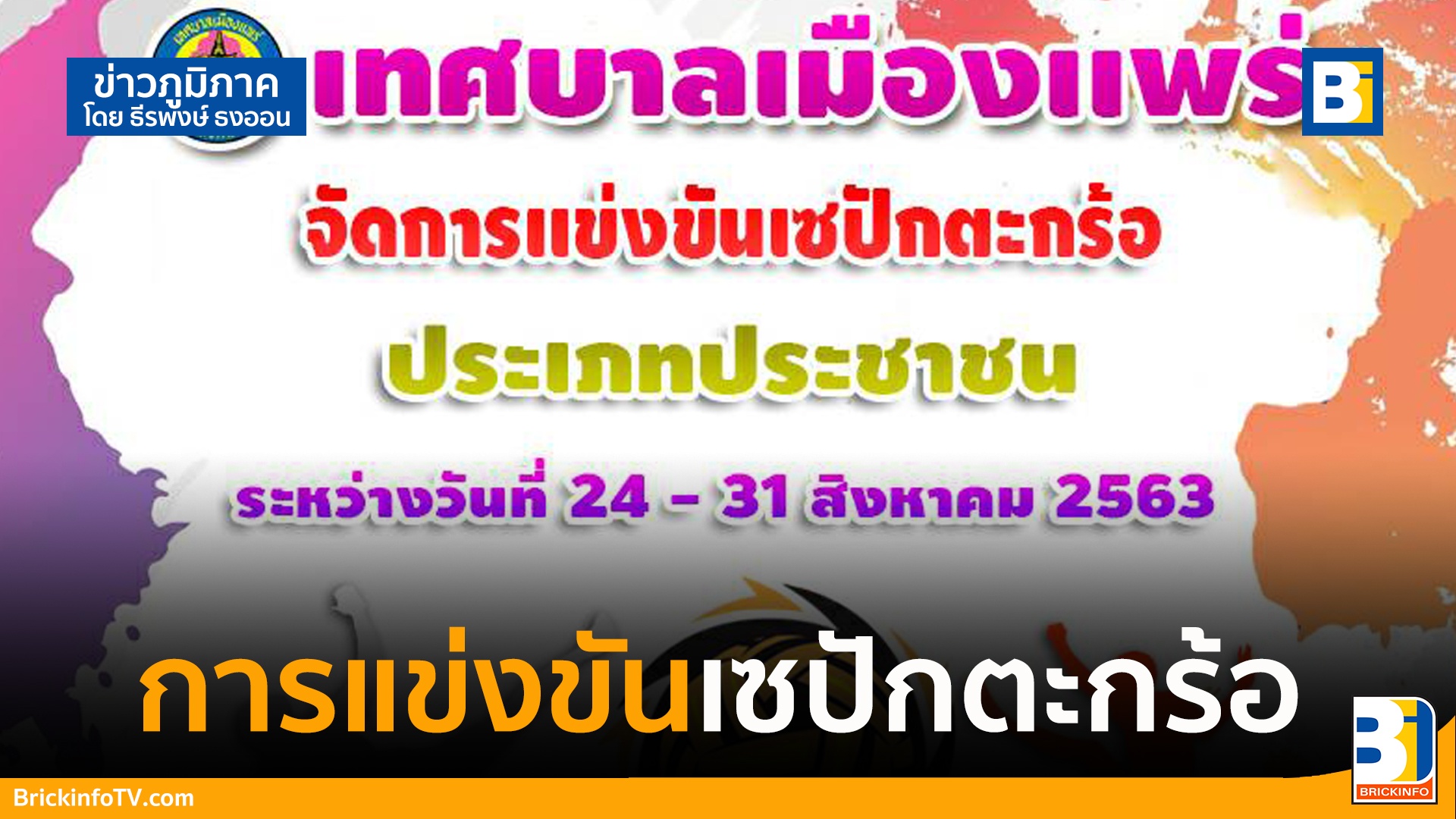 เมื่อวันที่ 11 สิงหาคม 2563 นายพัฒนพงษ์ พงษ์นวล รองนายกเทศมนตรี รักษาราชการแทนนายกเทศมนตรีเมืองแพร่ กล่าวว่า ทางเทศบาลเมืองแพร่จะจัดการแข่งขันเซปักตะกร้อประเภทประชาชน ระหว่างวันที่ 24 ถึง 31 สิงหาคมนี้ ตั้งแต่เวลา 17.00 นเป็นต้นไป ณสนามกีฬาโรงเรียนสาธิตเทศบาลบ้านเชตวัน
